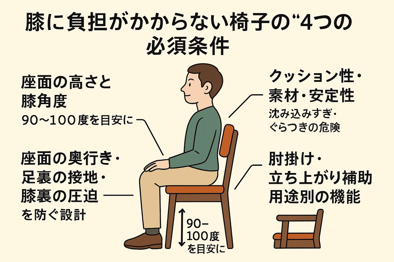 だからこそ、膝にやさしい椅子を選び、正しい姿勢で使うことがとても重要です。