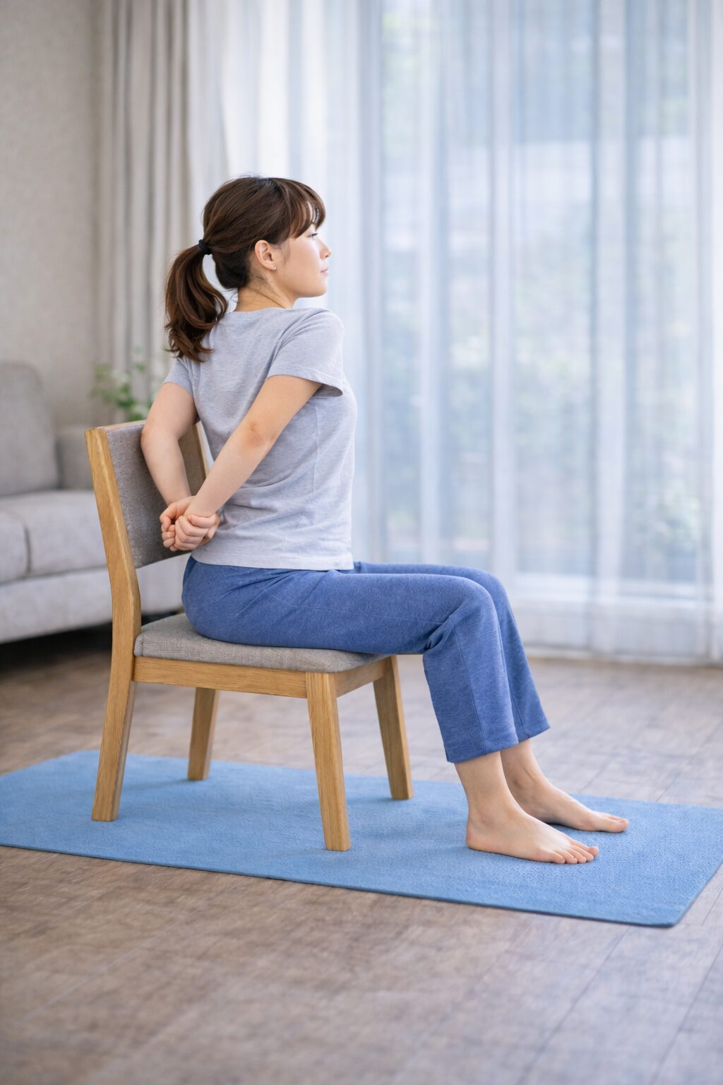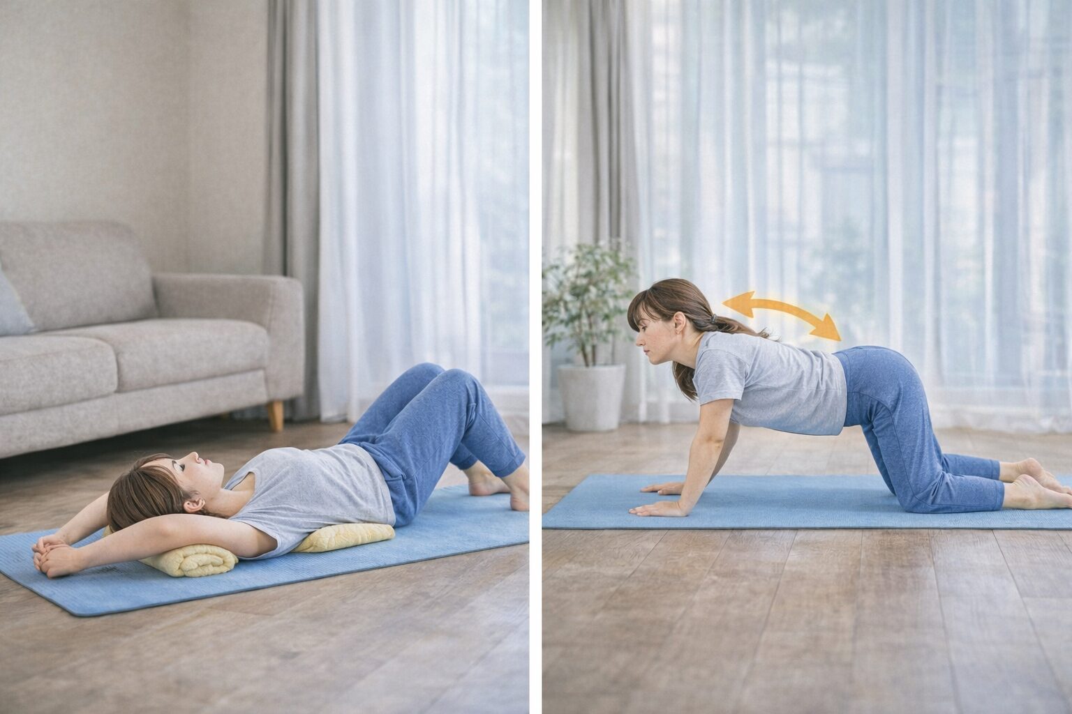 胸椎ストレッチは激しく動く必要はなく、ゆっくり背中を動かすだけでも十分だと考えられています。大切なのは、痛みのない範囲で無理なく続けることです。ここでは、自宅で取り入れやすい基本ストレッチを紹介します。
