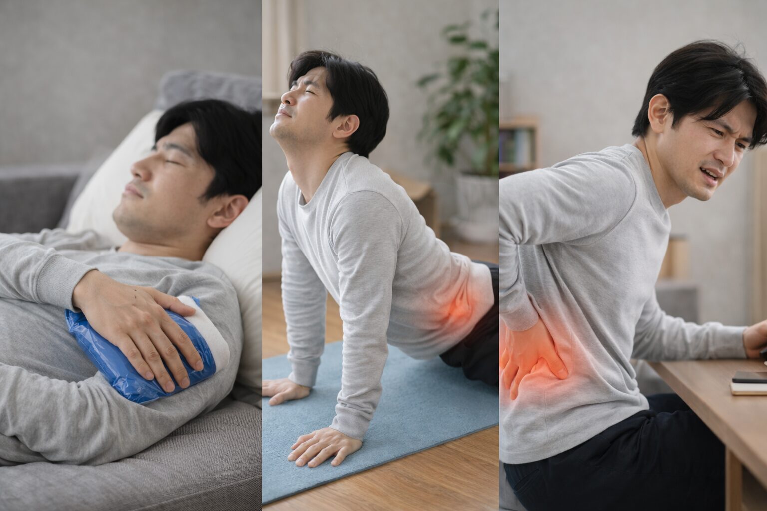 ぎっくり腰になった直後は、炎症が強い状態とされているため、無理に動かず安静にすることが大切と言われています。特に最初の1〜2日は、痛みが出ない姿勢で体を休めるのが基本とされています。