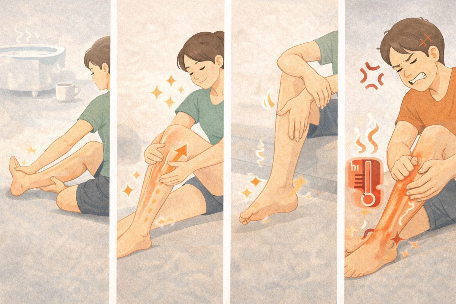 これは血行が促されることで起こる反応の一つではないか、と考えられています。血流がよくなることで、筋肉にたまった疲労物質が流れやすくなり、脚のだるさや重さの軽減につながる可能性があると言われています。