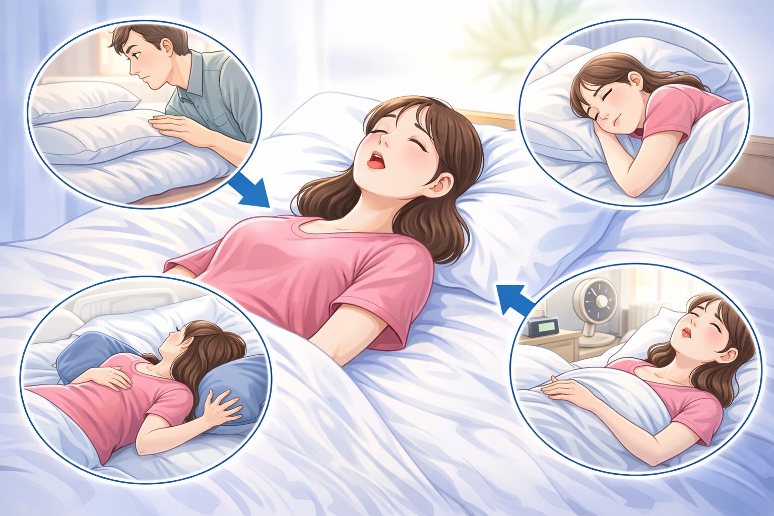 「使い分けはアリ」と言われています。たとえば、いびきが気になる日や息苦しさが出る日は横向きがラクに感じる人もいるようです。反対に、肩がつらい日は短時間だけ仰向けに戻す…みたいに、その日の体調で切り替えるのも手です。寝姿勢を固定しすぎない方が、結果的に睡眠が安定しやすいこともあります。