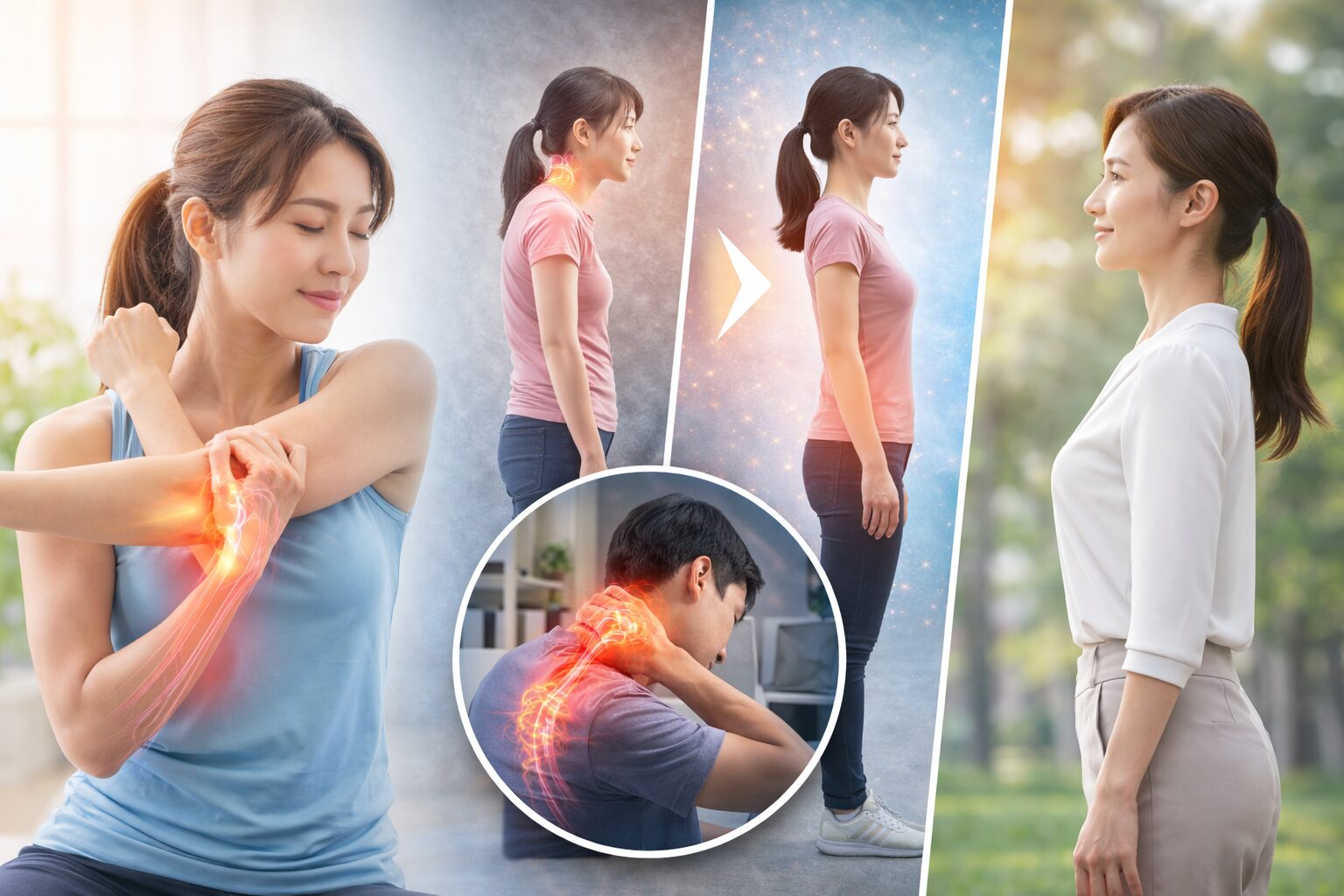 よくあるのは、長時間同じ姿勢が続いたあとに体を動かしづらく感じる状態です。「立ち上がるときに腰が重い」「肩を回すとゴリゴリする」、こんな感覚、ありませんか?