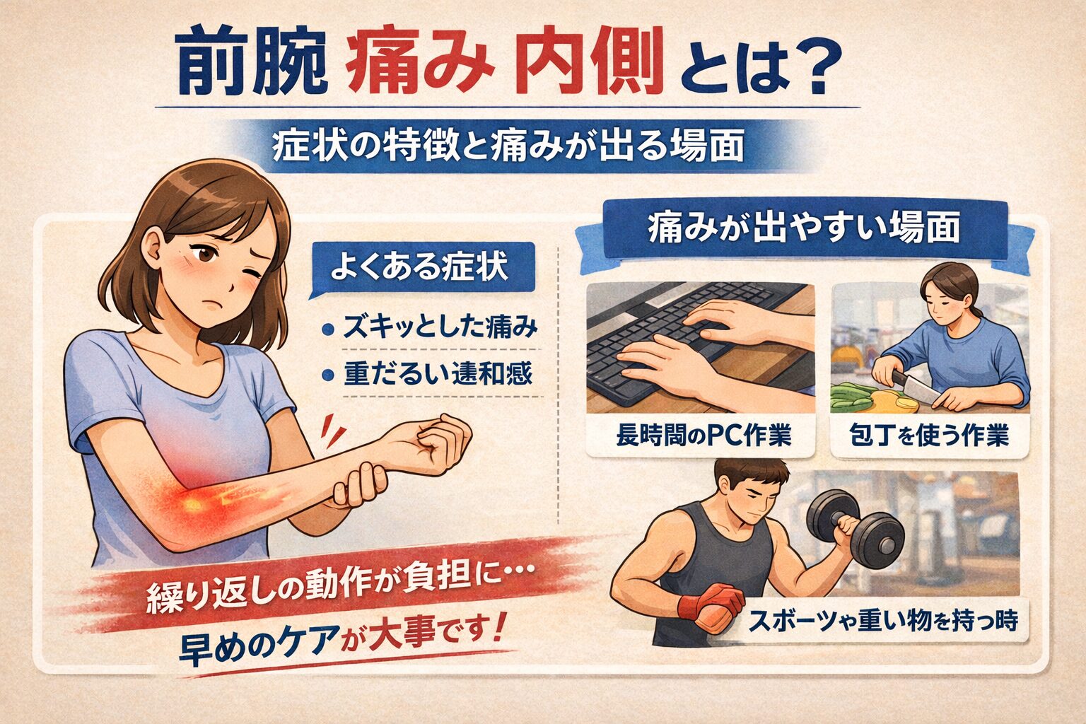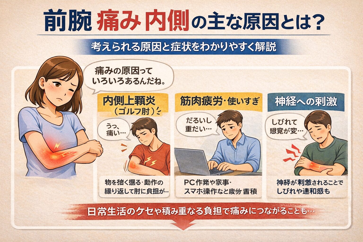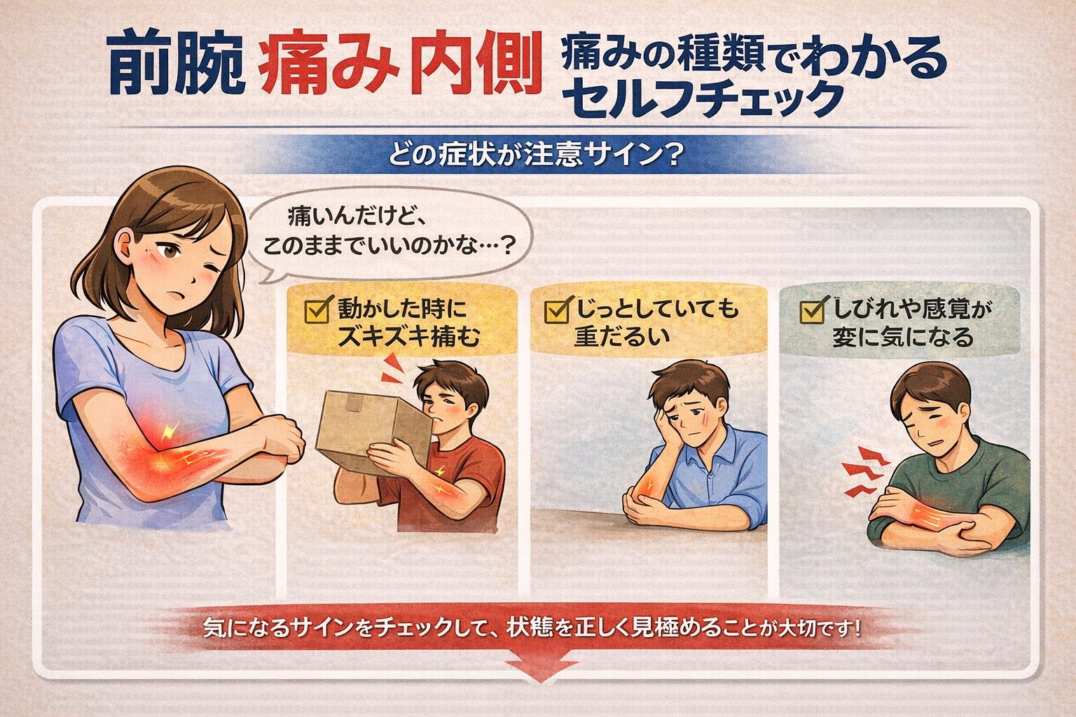 「最近、前腕の内側がジワッと痛むんだけど、これって何だろう?」