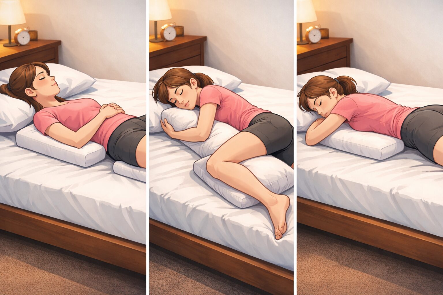 そんな声をよく聞きます。実は寝る時の姿勢とクッションの置き方で、腰のラクさが変わると言われています。ここでは、仰向け・横向き・うつ伏せ、それぞれの姿勢別に、反り腰の人が意識したいクッション配置を見ていきましょう。