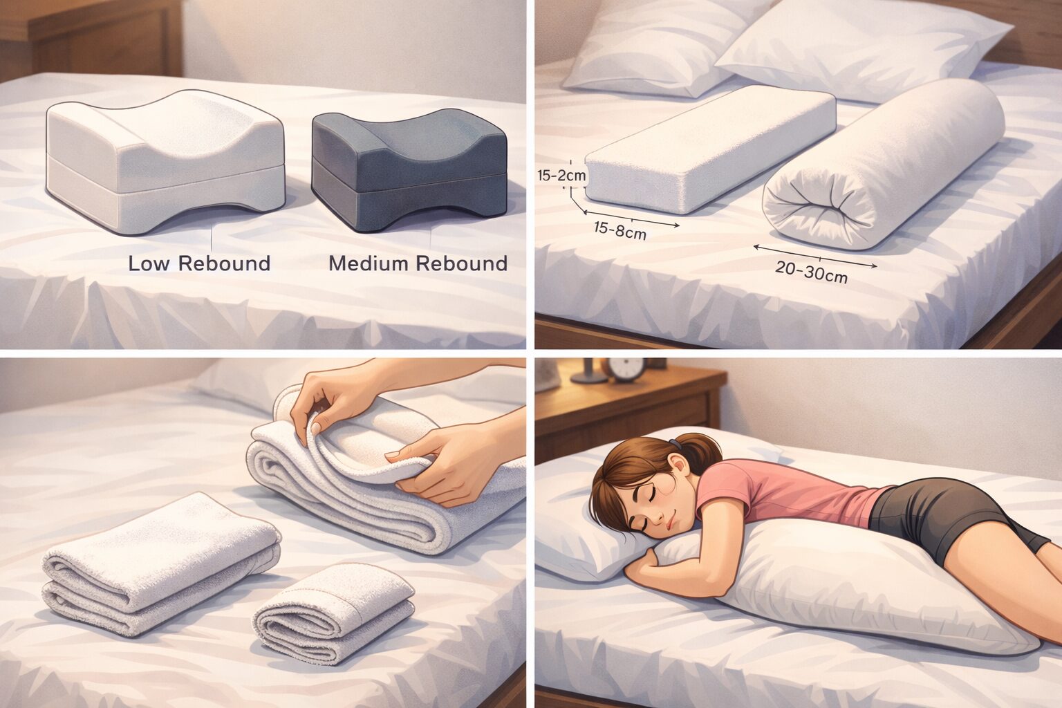 横向き寝が多い人には、膝の間に挟みやすい幅のクッションや、抱き枕タイプが使いやすいと言われています。