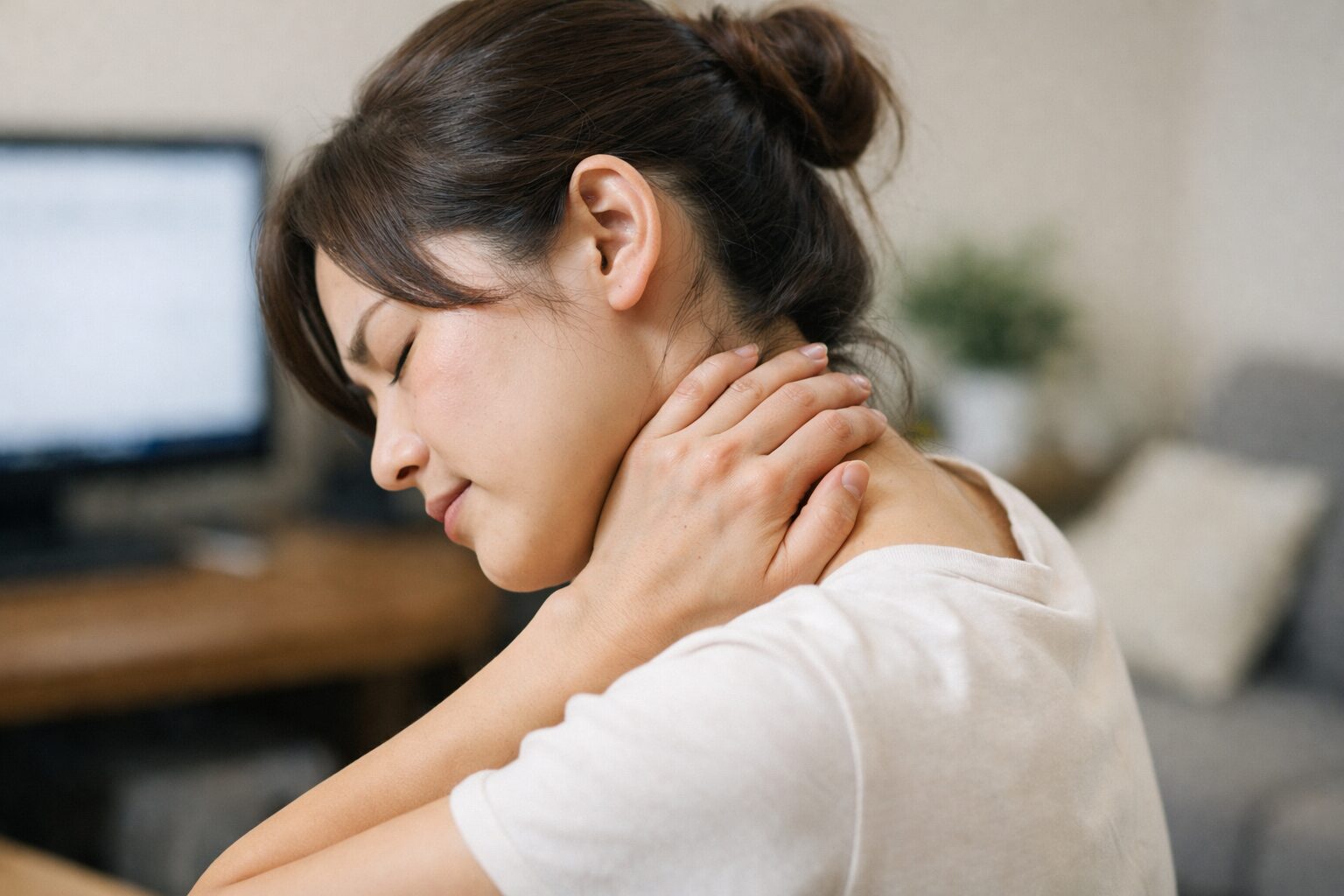 こうした場合、首まわりの筋肉だけでなく、姿勢不良や体の使い方が影響していると言われています。特に、長時間同じ姿勢が続く人は、首から肩、背中までまとめて負担がかかりやすいようです。