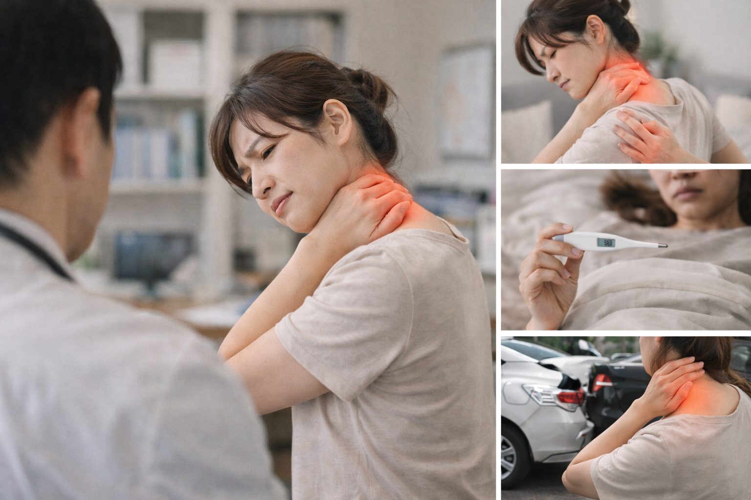 さらに、交通事故や転倒のあとに首の痛みが出た場合、いわゆるむちうちの可能性も考えられるようです。事故直後は軽く感じても、後から症状が強まることがあるため、早めに状態を確認するのが安心だとされています。
