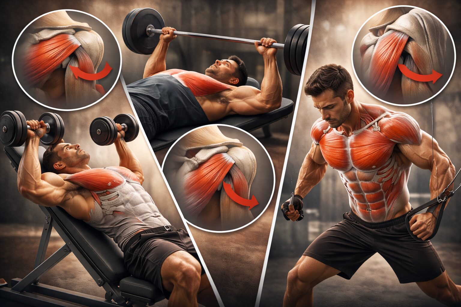ベンチプレスや腕立てで“胸に効く”と感じやすいのは、この要素が強いと言われています。