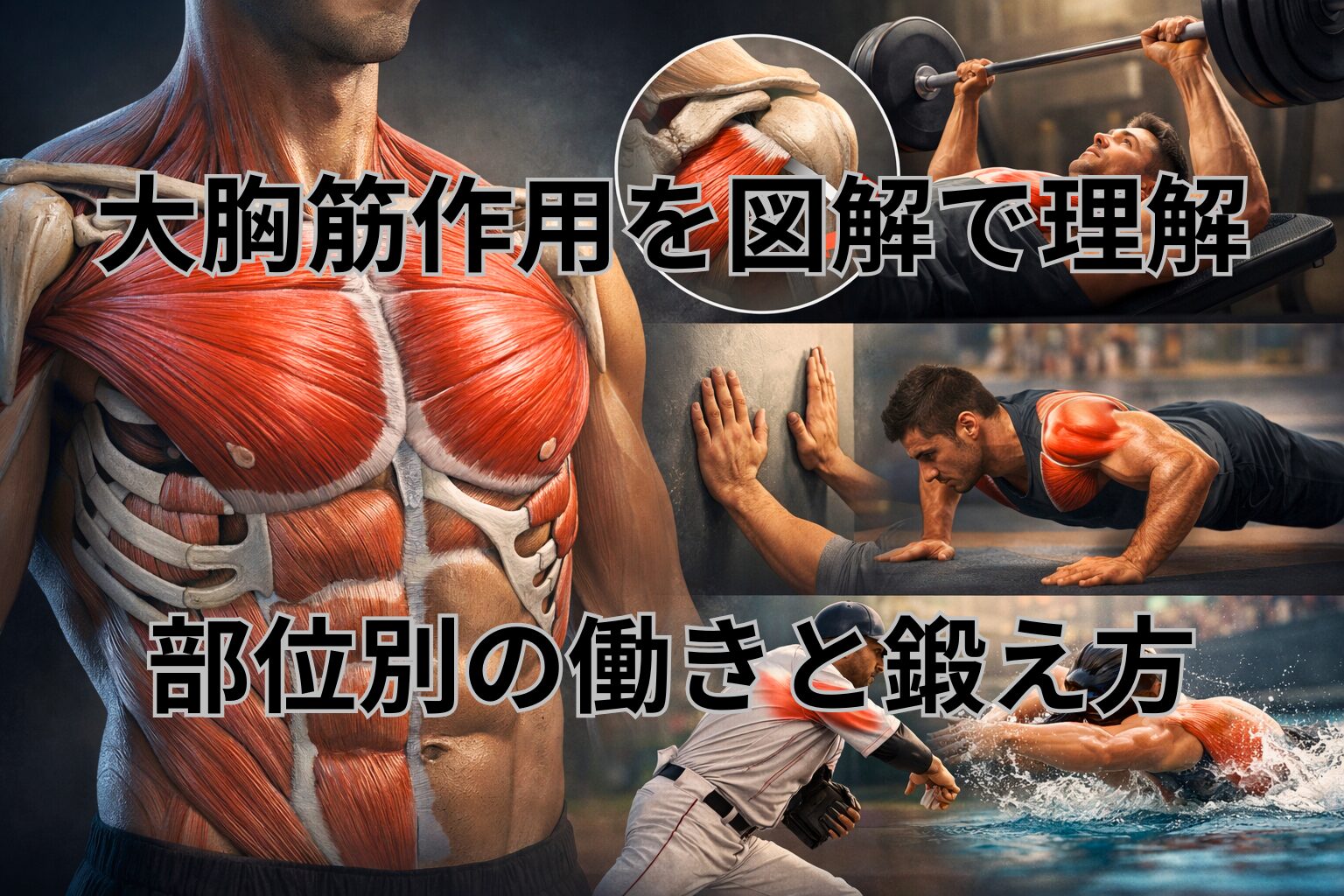 つまり普段は“腕を動かす筋”がメインだけど、状況次第でサポート役にも回る、という位置づけですね。ここを押さえると、大胸筋作用の全体像がグッとつながります。