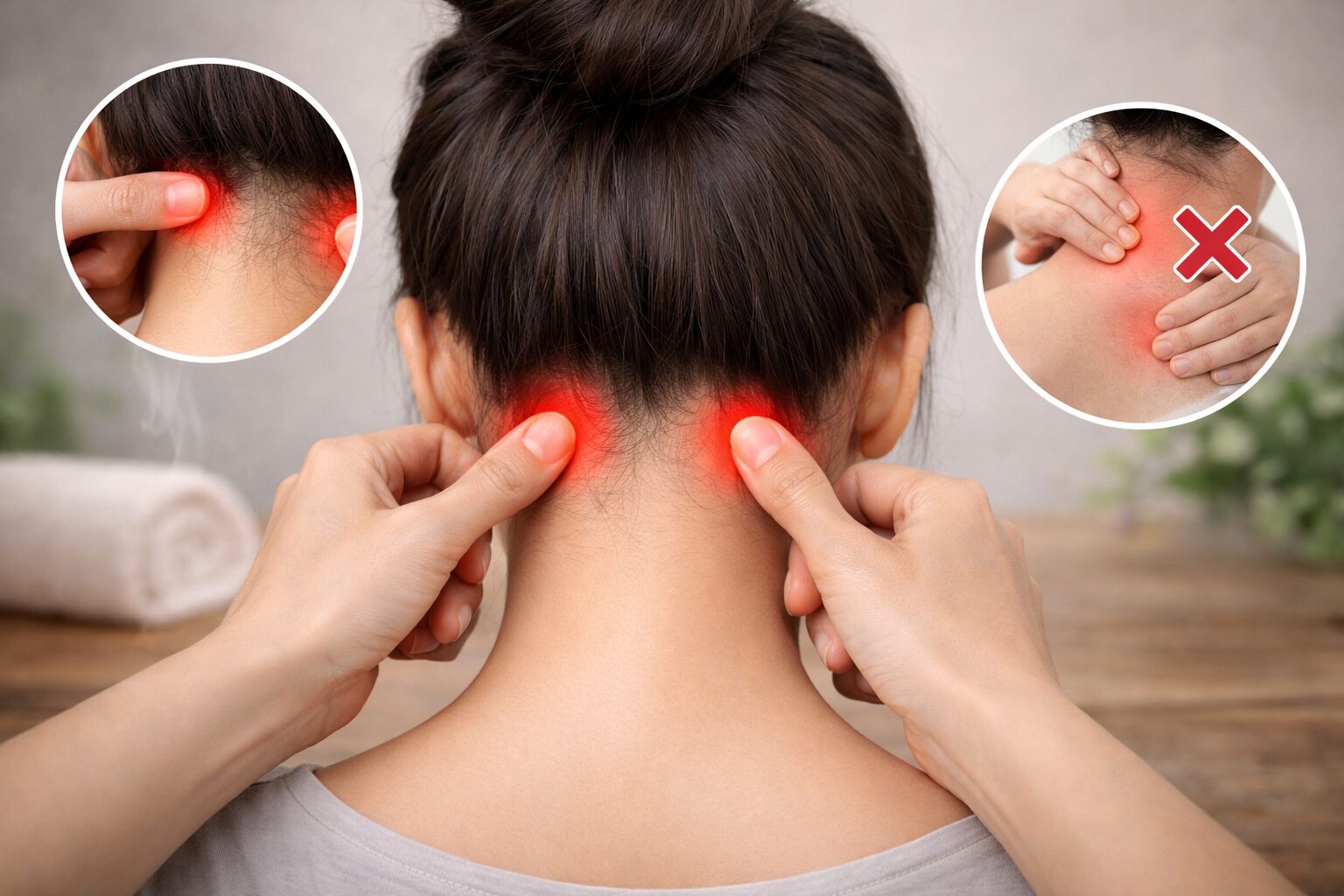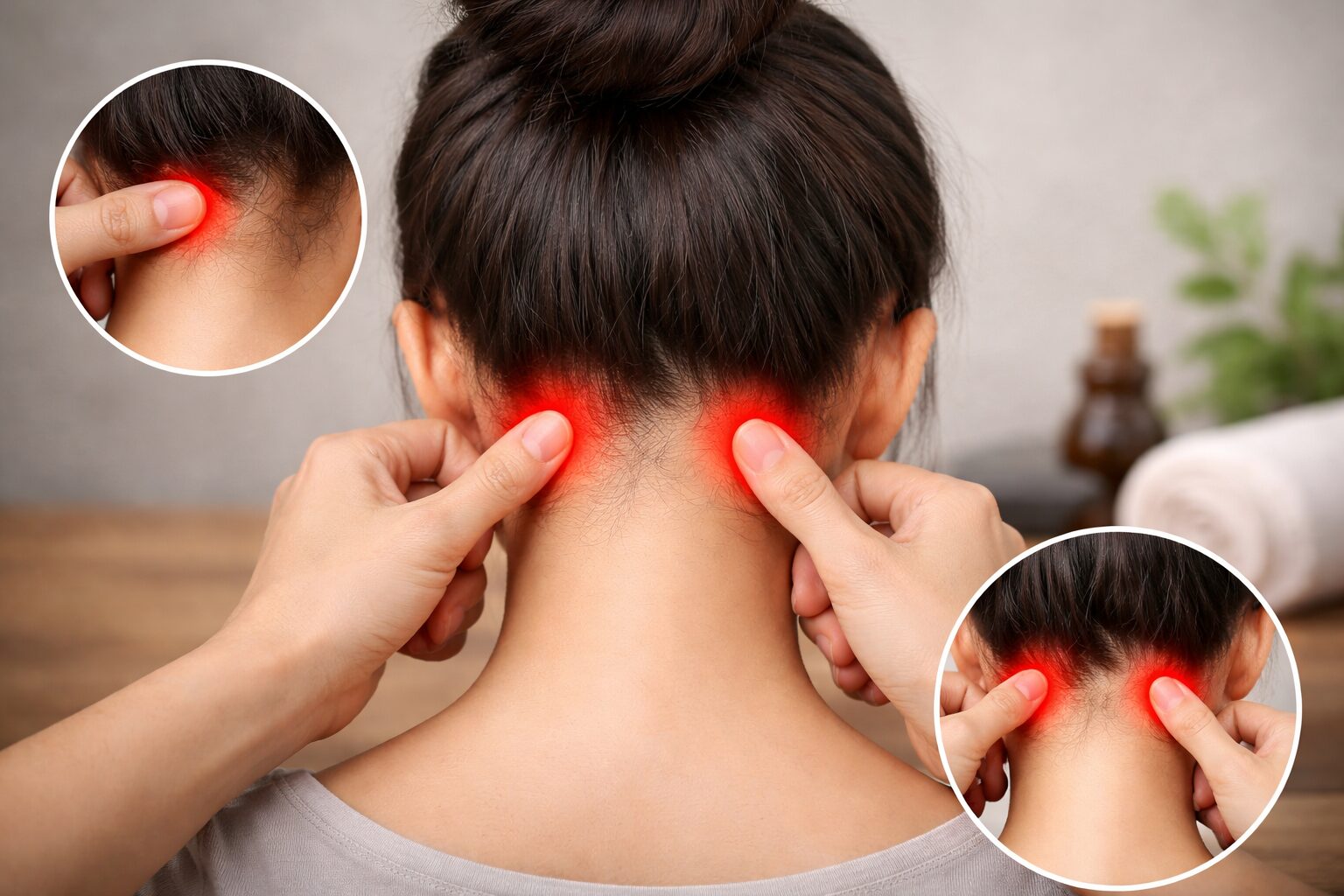 参考記事でも、首の後ろにある筋肉の外側のくぼみが目安になると紹介されています。最初は「これで合ってる?」と迷いやすいですが、左右対称にあるのが特徴なので、両方を比べながら探すとわかりやすいですよ。