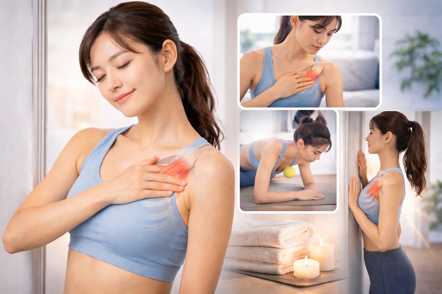 B:「肩が前に入りづらくなると、鎖骨まわりや胸のラインがすっきり見えると言われています。とはいえ、強く押したり痛みを我慢したりはおすすめしません。やさしく短時間で、心地いい範囲が基本です。」