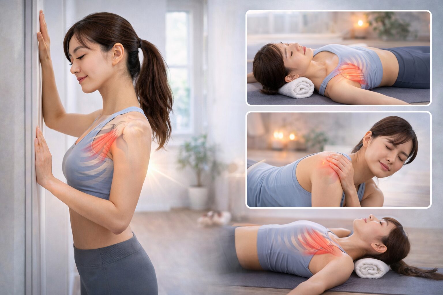 #小胸筋ストレッチ #ドア枠ストレッチ #胸を開く #呼吸で伸ばす #やりすぎ注意