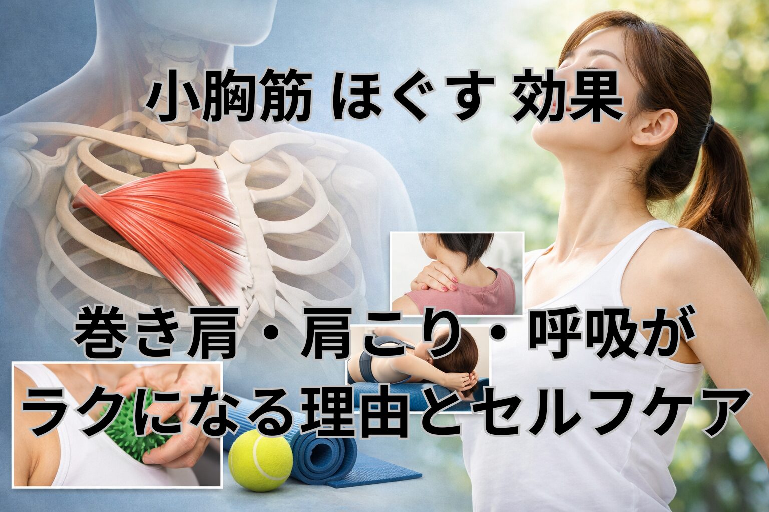 だからこそ、セルフケアは“胸の前をゆるめる”だけで終わらせず、背中側の動きや呼吸もセットで整えるのがよさそうです。」