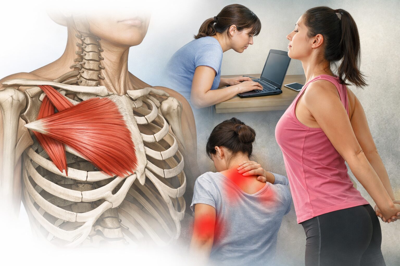 「肩こりって、肩だけの問題じゃないの?」と感じる方も多いですよね。実は、小胸筋が硬くなると肩甲骨が前に引っ張られ、首や肩まわりの筋肉に負担がかかりやすくなると言われています。