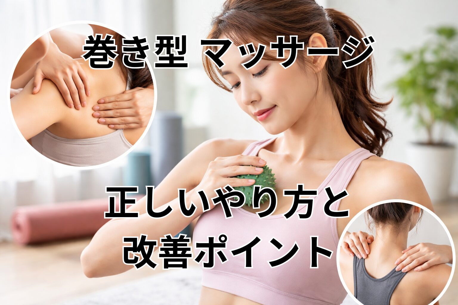 「巻き型 マッサージって、本当に意味あるの?」って思いますよね。結論から言うと、マッサージは“固まりやすい筋肉をゆるめる手段の一つ”だと言われています。肩が前に入ると、胸まわりや首・肩まわりの筋肉がずっと頑張りっぱなしになりやすいようです。そこでやさしくほぐすと、筋肉の緊張が落ち着き、血流がめぐりやすくなることがあると言われています。「終わったあと、呼吸がしやすい」「肩が軽い気がする」と感じる人がいるのも、この流れで説明されることが多いです。