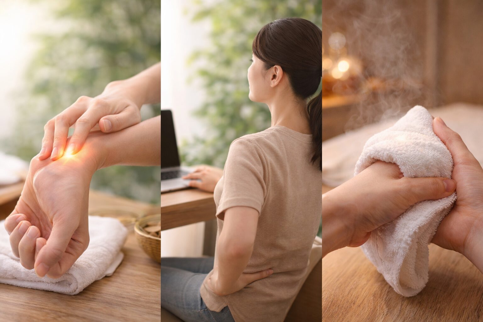 また、蒸しタオルなどで手首や腕を温める方法も、手軽に取り入れやすいとされています。
