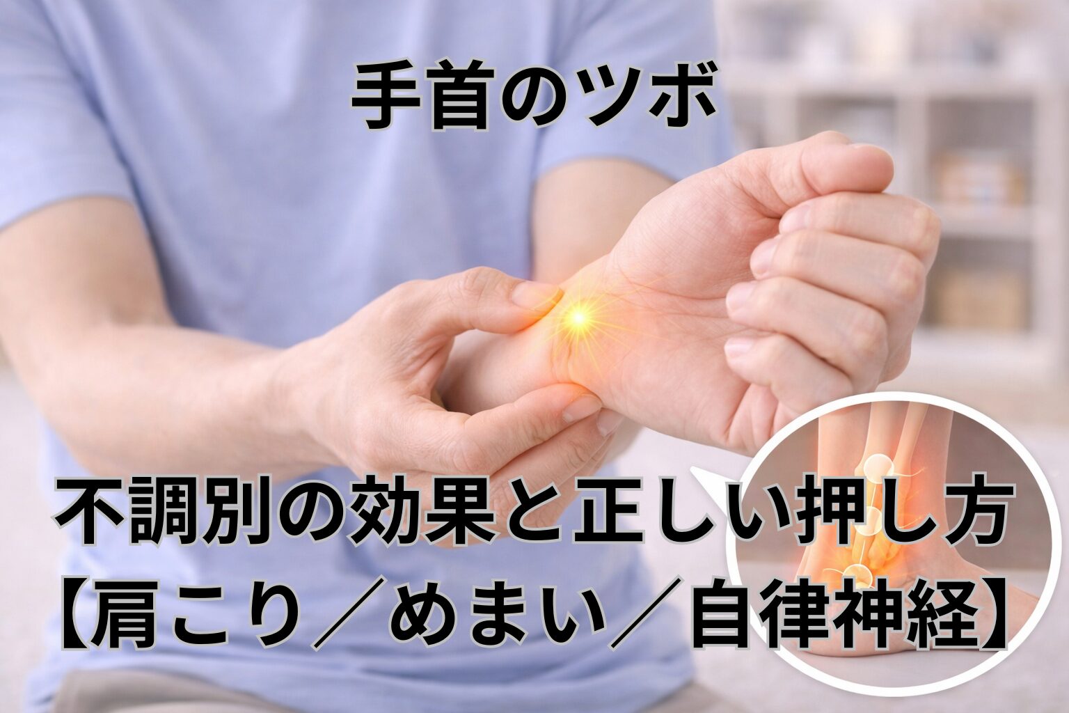 「手首のツボって、結局どれを押せばいいの?」と迷うこと、ありませんか。実は、感じている不調によって“意識したいツボ”が少しずつ違うと言われています。ここでは、よくある3つの悩みを例に、使い分けの考え方を見ていきましょう。