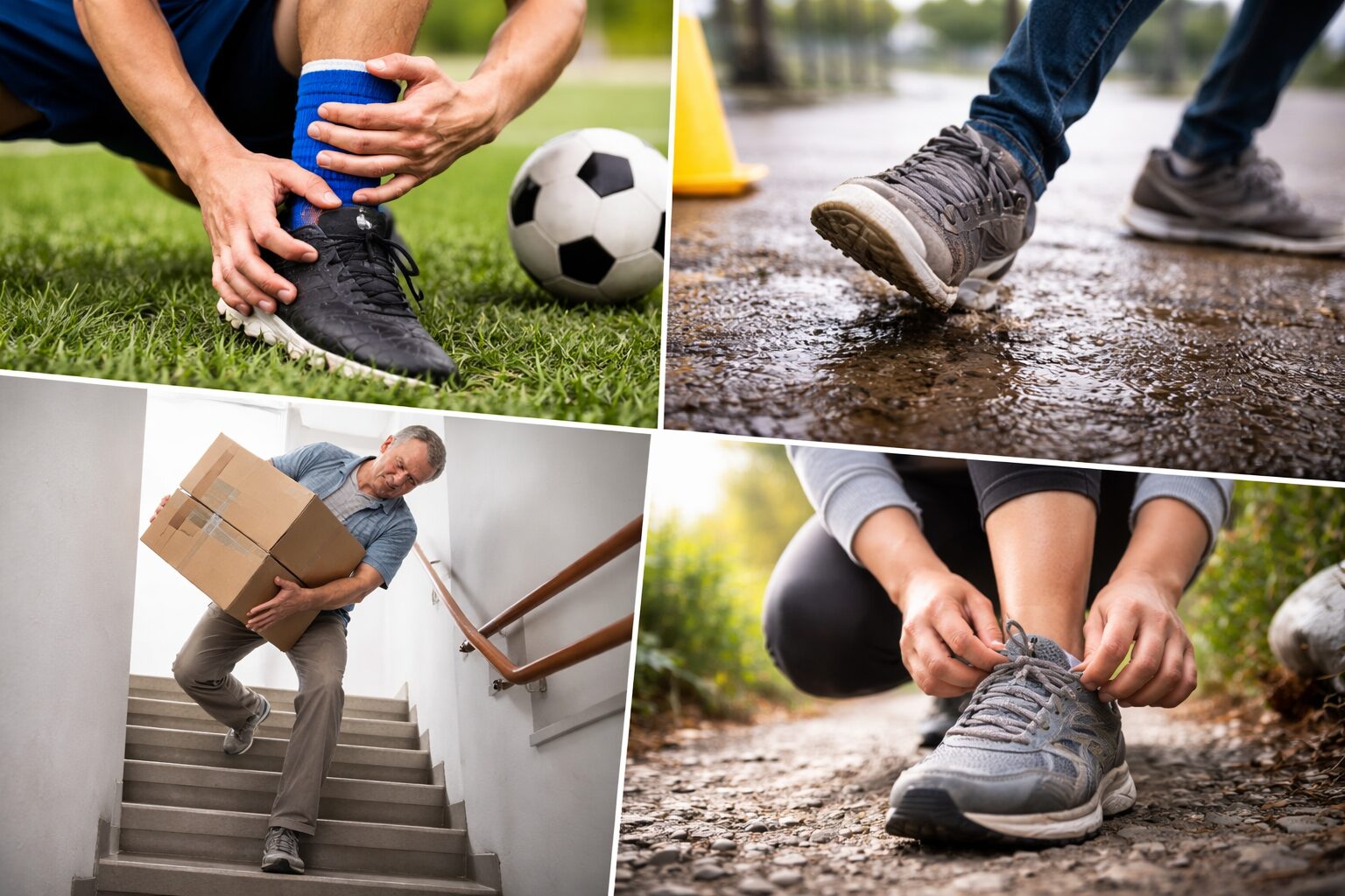 実は、捻挫は日常生活の中でもよく起こると言われています。たとえば、階段の上り下り、急いでいるときの方向転換、重い荷物を持った状態での移動など、何気ない動作でも発生する可能性があります。
