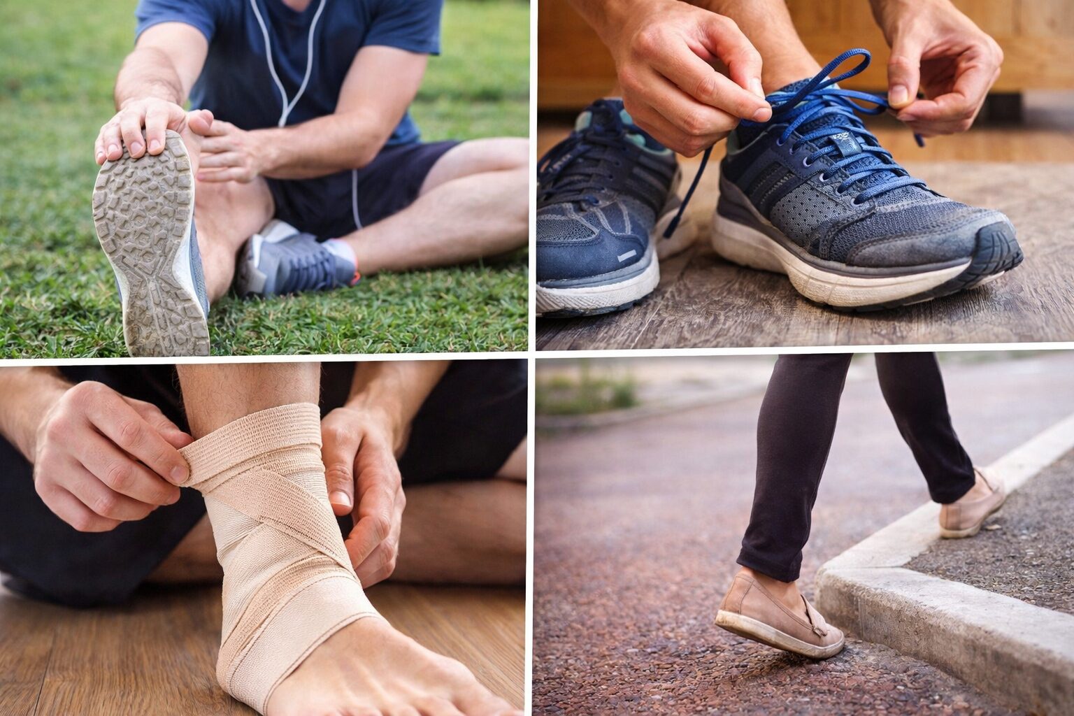 たとえばサイズが合っていない靴や、クッション性の低いシューズは、足首への負担が増えやすいと言われています。また、濡れた路面や不安定な地面も、バランスを崩すきっかけになりやすいとされています。