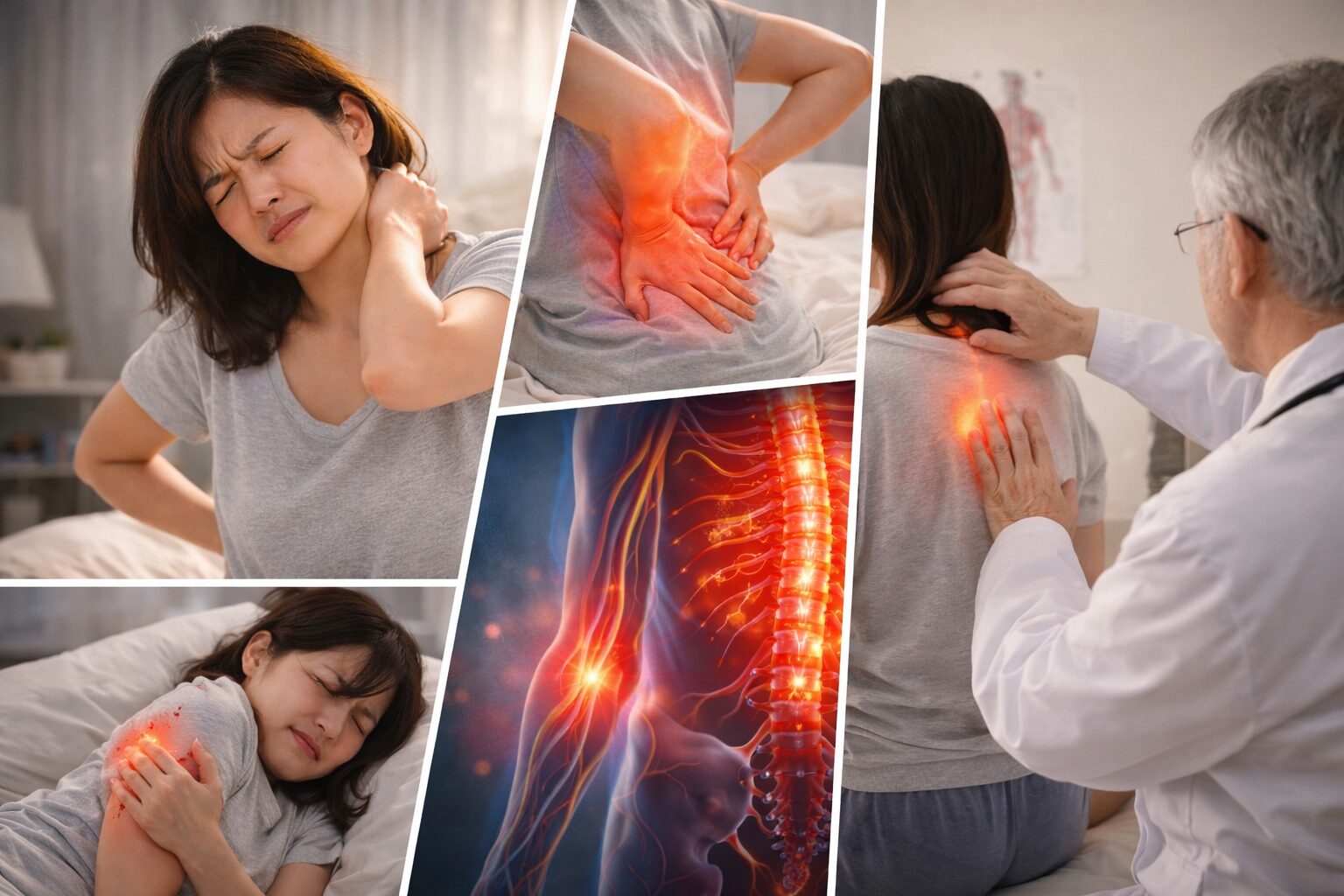 このタイプは、単なる筋肉疲労とは別の視点が必要なこともあるようです。線維筋痛症は**広い範囲の慢性的な痛み(3か月以上)**や、朝のこわばり、睡眠の不満などがみられると言われています。整形外科的な問題(例:神経の圧迫など)でも、しびれや力の入りにくさが出ることがあるため、「痛みの広がり方」「しびれの有無」「続いた期間」をメモして来院時に伝えるのがよいと言われています。