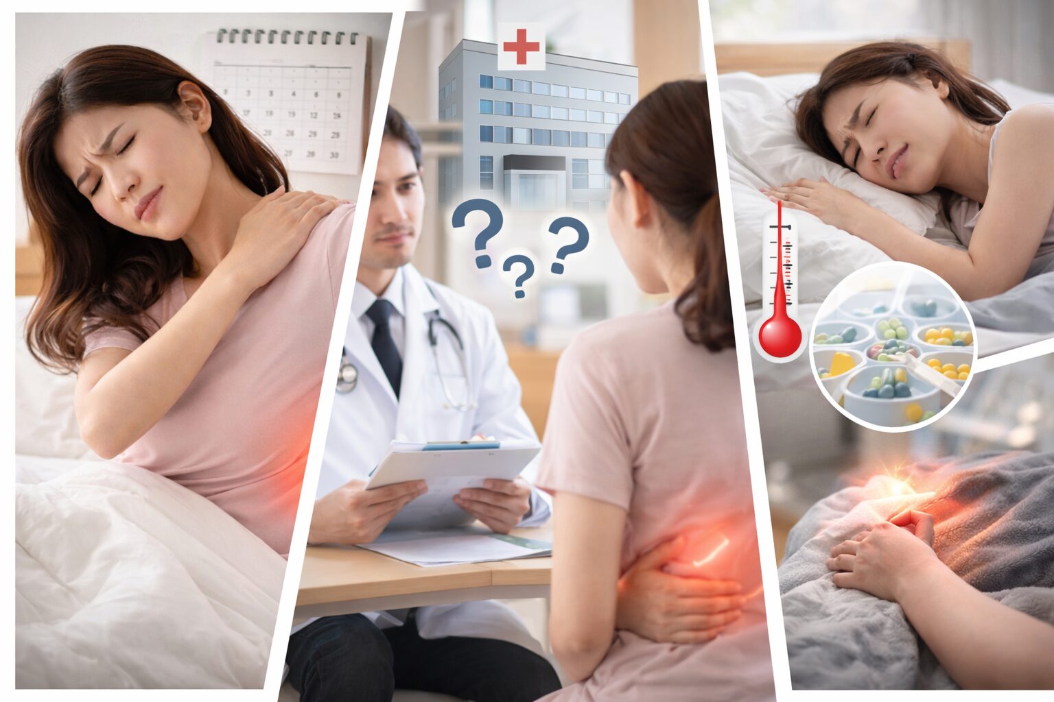 私: “動かしてないのに痛い”“夜中に痛みで目が覚める”は、注意したいサインだと言われています。寝返りのたびに激痛が走る、安静にしても痛みが続く、呼吸で痛みが強くなる感じがある…こうした場合は自己判断が難しいため、医療機関で検査の相談をするのが良いとされています。