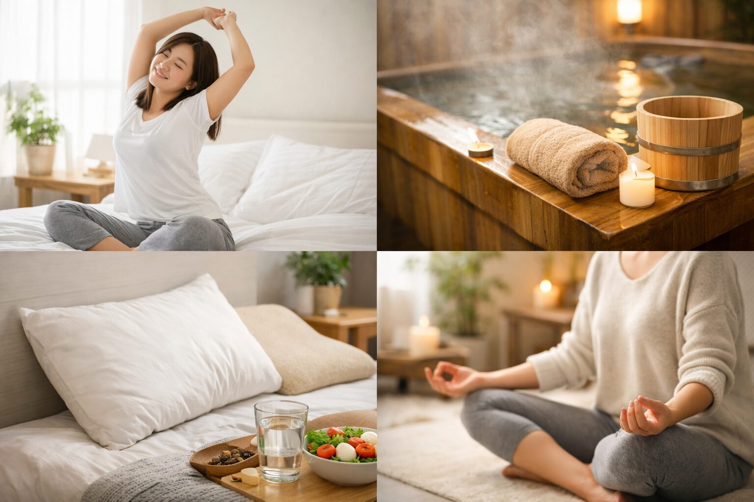 寝る前にスマホを控えたり、深呼吸や軽いストレッチを取り入れることで、体が休まりやすくなると考えられています。無理なく続けられる習慣がポイントです。