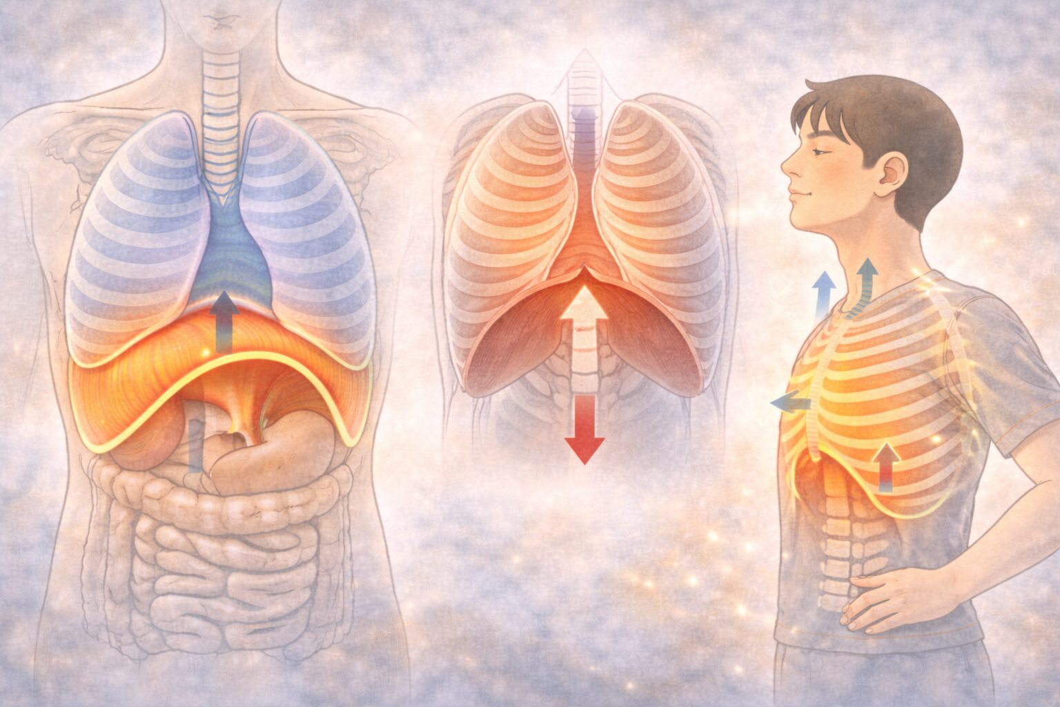 横隔膜が下がり、肋骨が外へ開くことで、胸郭は立体的に広がります。その結果、肺が無理なく動きやすくなる仕組みだと考えられているようです。