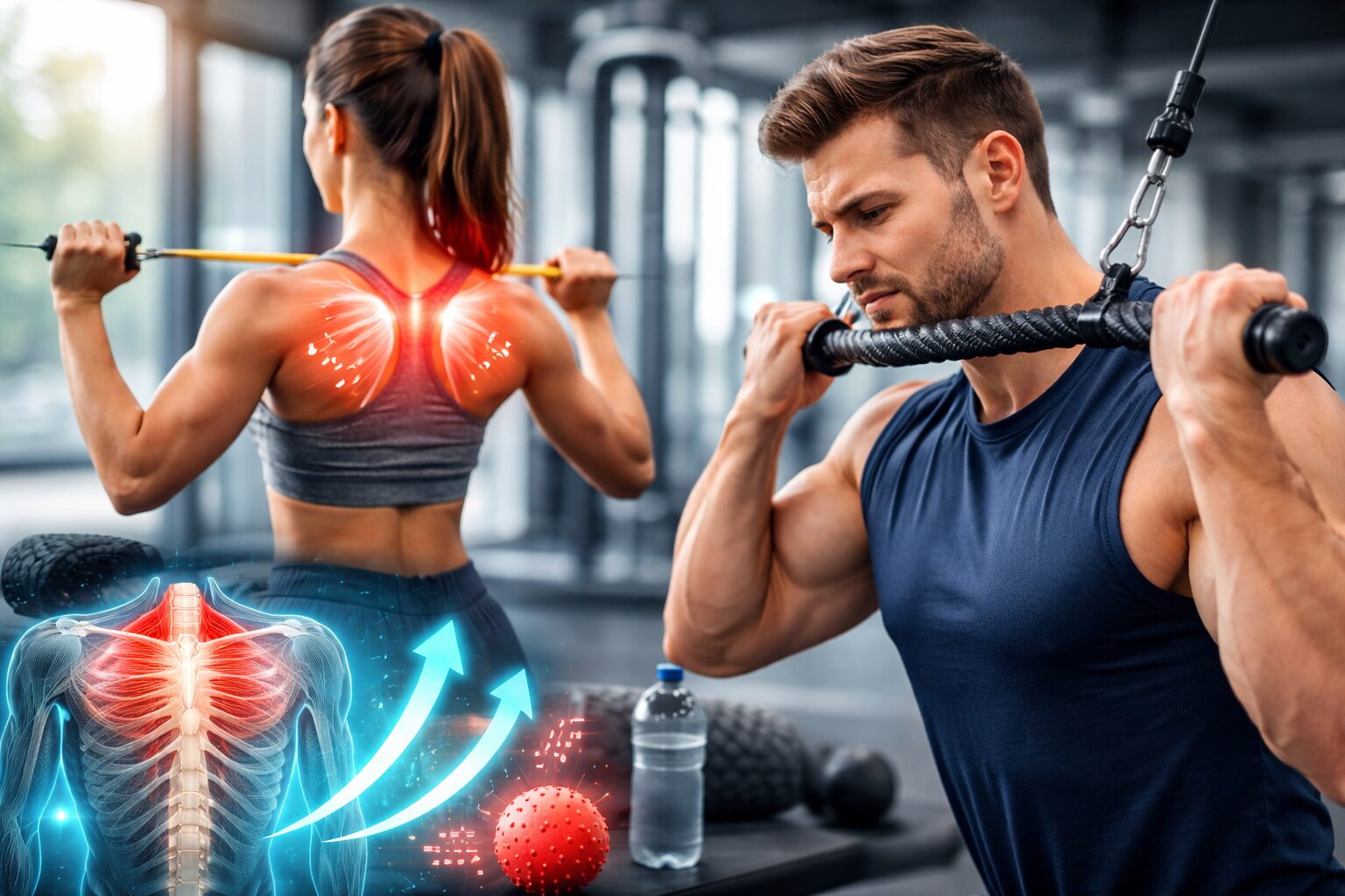 よくあるのが、フォームが崩れたまま無理な負荷で続けてしまうパターンです。肩をすくめた状態でトレーニングすると、肩関節や筋膜に余計なストレスがかかり、結果的に首や肩まわりがガチガチになることがあるそうです。