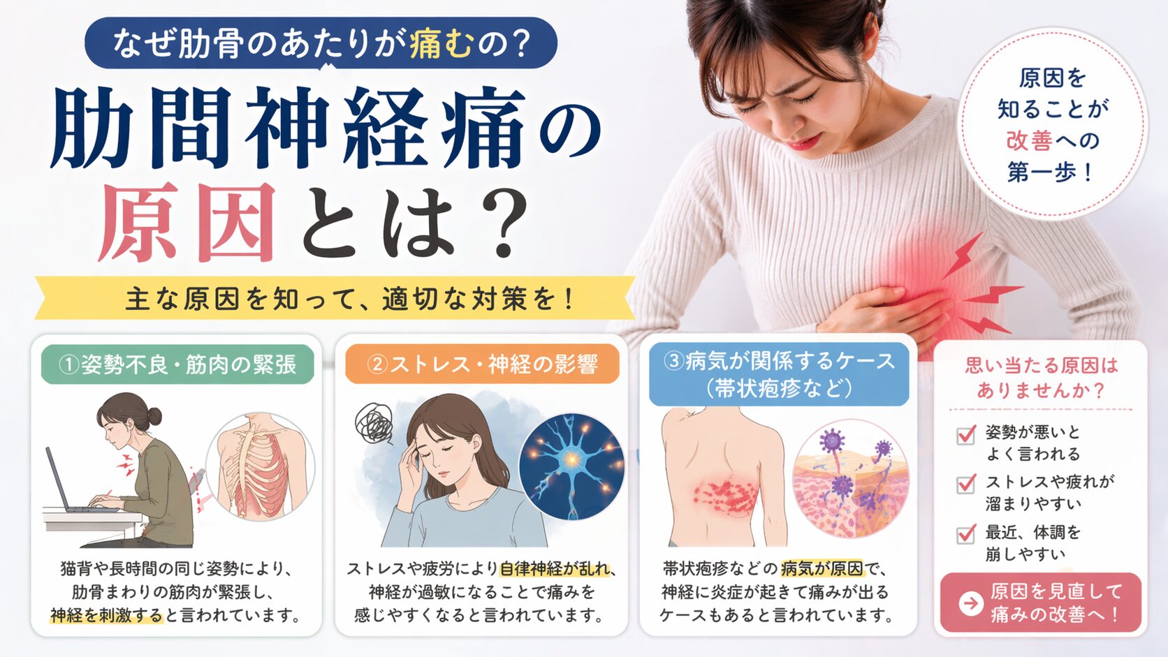 #肋間神経痛 #原因 #姿勢改善 #ストレス #体の不調