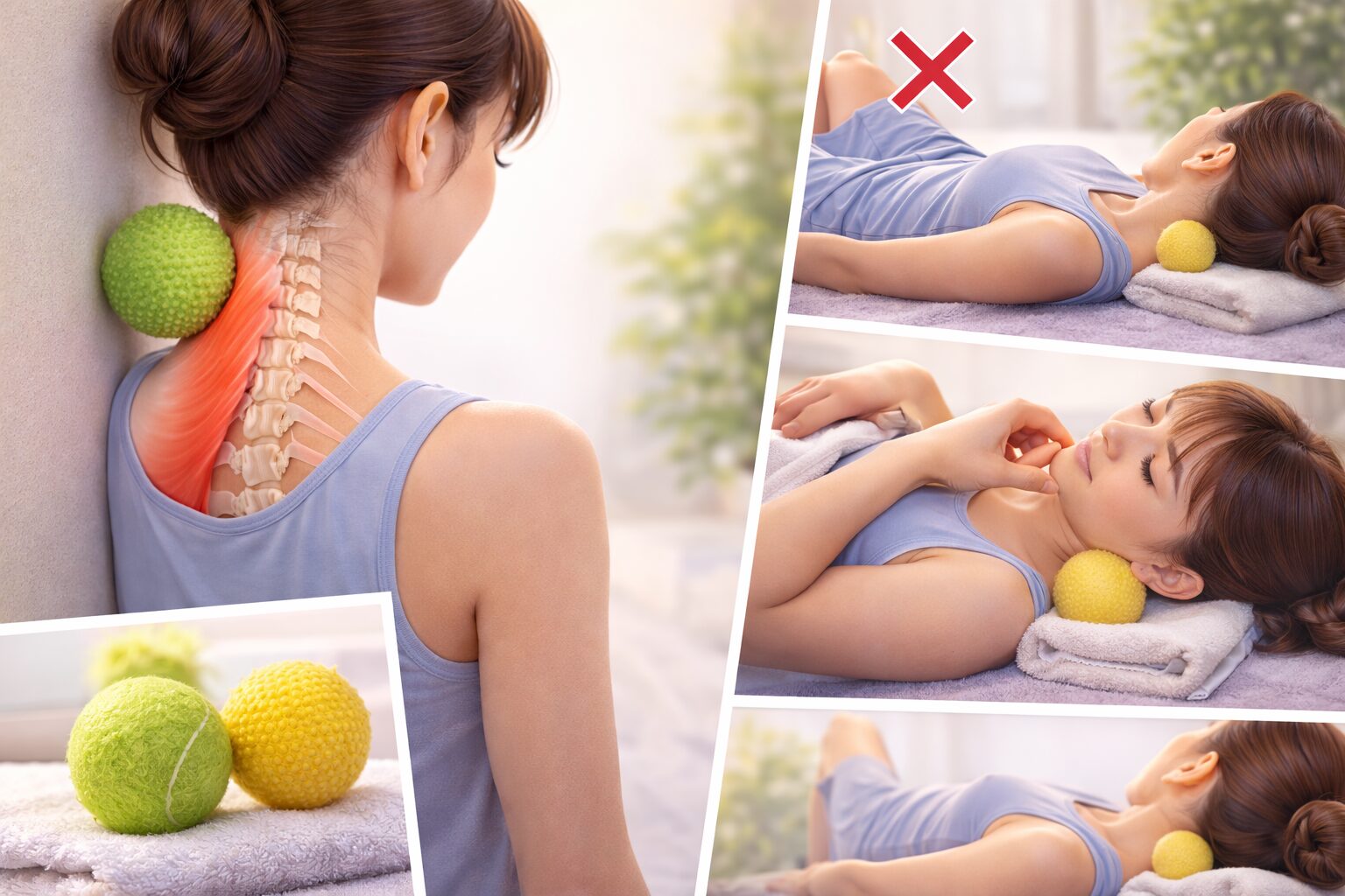 肩甲挙筋 マッサージを道具でやるなら、最初は「壁×ボール」が無難と言われています。床より圧を調整しやすいからです。