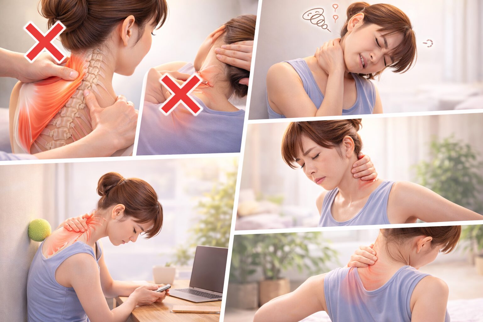 わたし「“効く感じ”が強いほど安全とは限りません。首の骨の真上や、首の横のやわらかい所に当たるなら中止が無難です」
