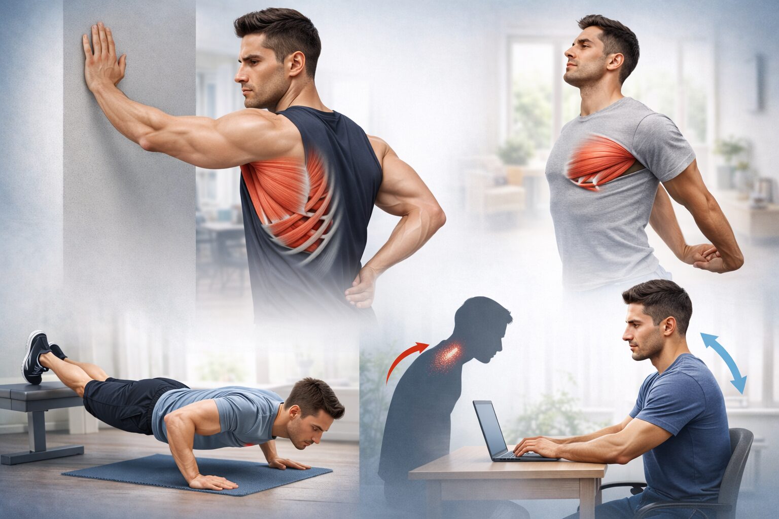 大胸筋下部や小胸筋は、押す・引くといった肩関節の動きに関与すると言われています。また、胸郭を安定させたり、姿勢のバランスに影響したりする点も見逃せません。