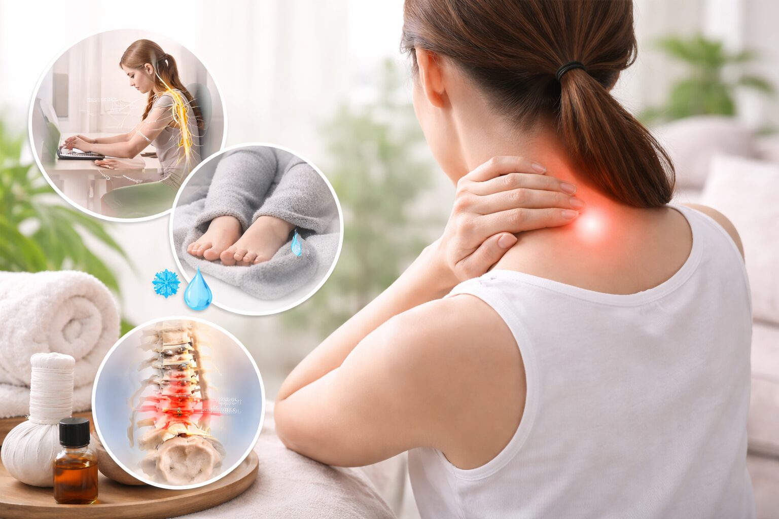 特に、冷えや運動不足、長時間同じ姿勢が続く人は注意したいところです。この場合は、ツボ刺激や温めるケアが相性いいとされています。