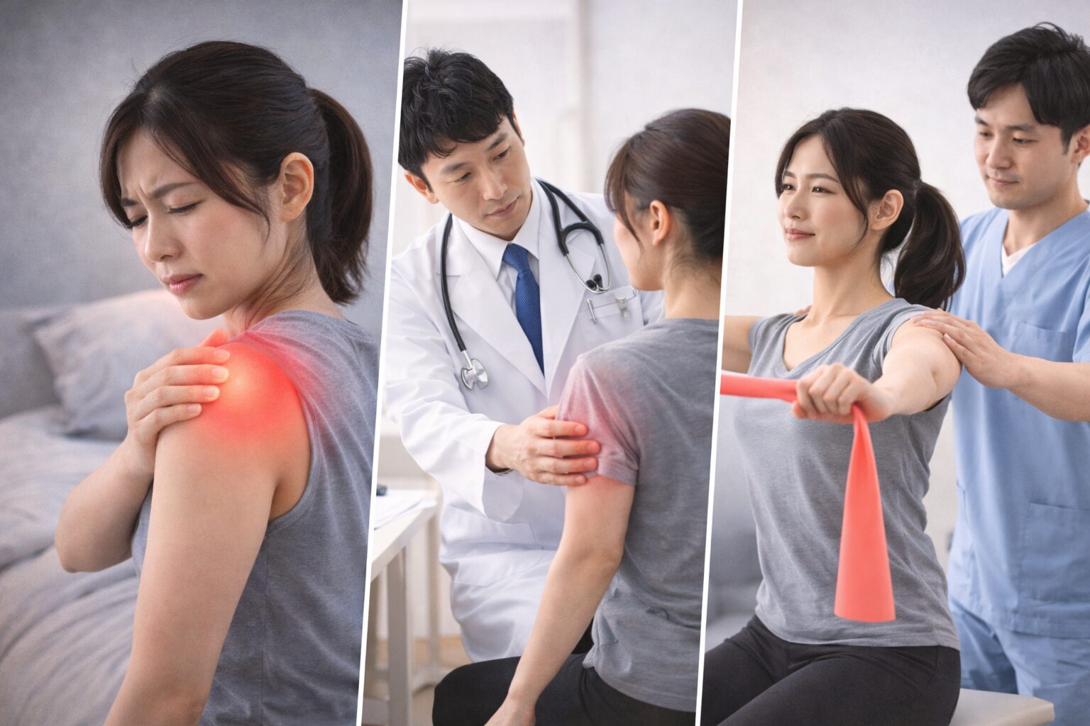 これらは筋肉・腱・関節・神経など複数の要因が関係するとされ、肩関節周囲炎や腱板損傷などが例として挙げられています。