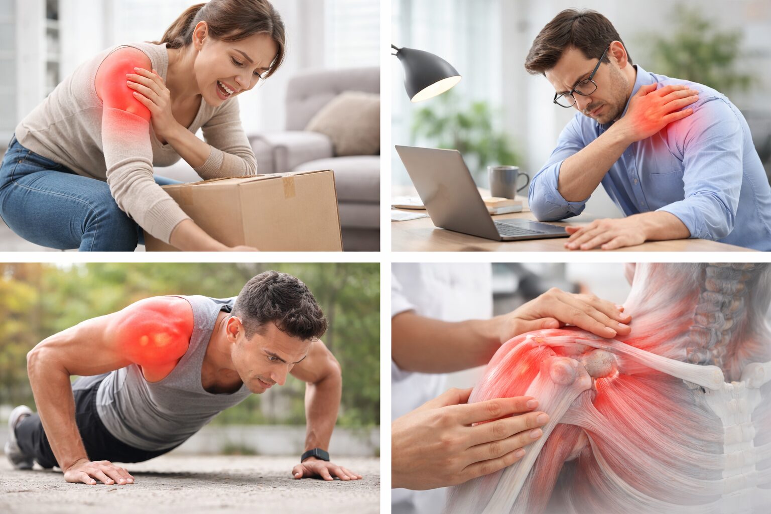 腕立て、懸垂、投げる動作、雪かき、引っ越し。普段やっていない動きほど、体がびっくりして負担が集中しがちです。痛みとしては“動かし始めがつらい”“伸ばすと痛い”など、パターンがいくつかあるので、思い当たる動作を振り返るのが近道ですね。