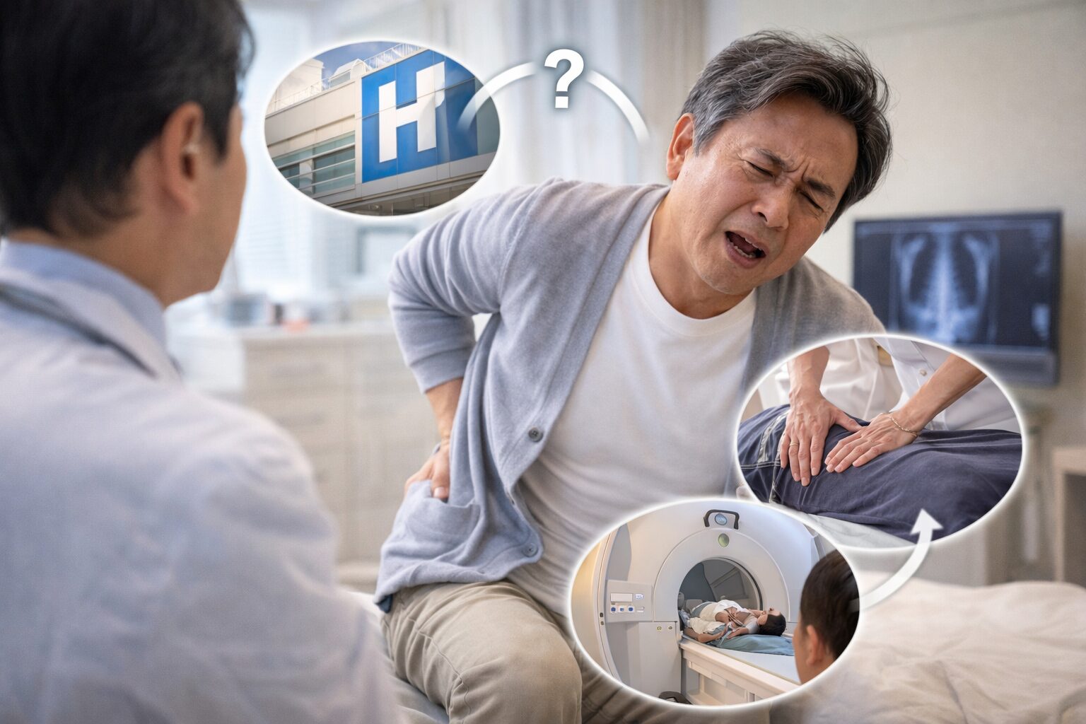 「腰が痛くて歩けないけど、どこに行けばいいの?」