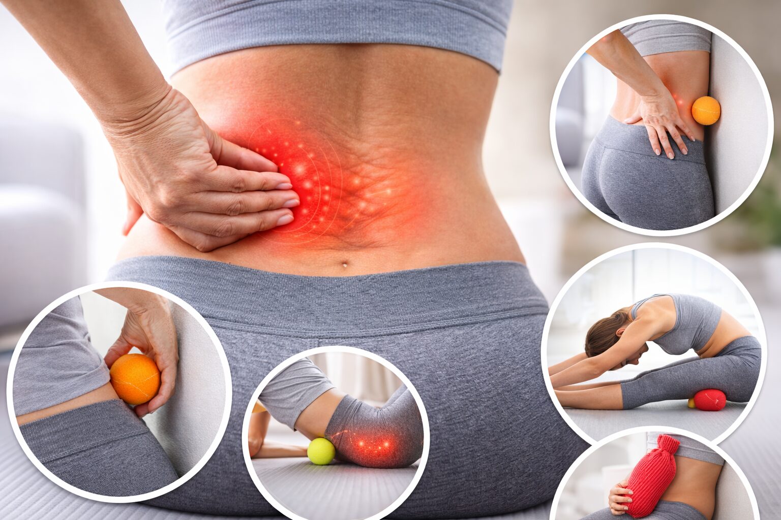 「手だと疲れる…」ってときは、テニスボールが便利です。やり方はシンプルで、壁と体の間にボールを挟み、腰〜お尻の周辺をゆっくり探します。床でやる場合は刺激が強くなりやすいので、最初は壁がおすすめと言われています。ポイントは“ゴリゴリ転がす”より、反応が強い所に当たったら20〜30秒ほど止めて呼吸すること。場所がわかったら、少しずつ位置をずらして探す流れがよい、と説明されています。