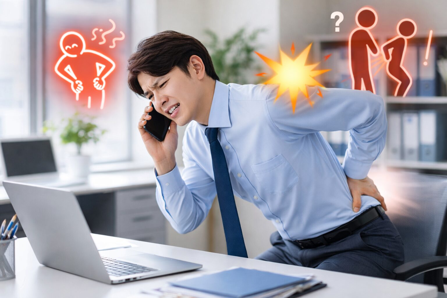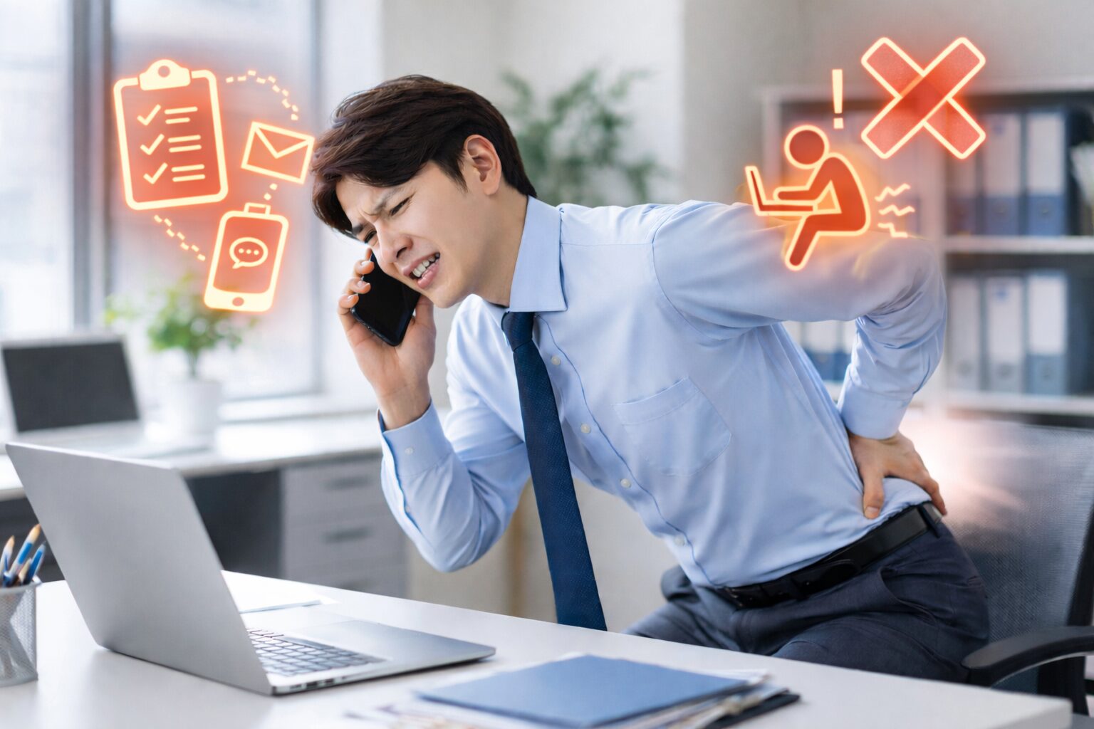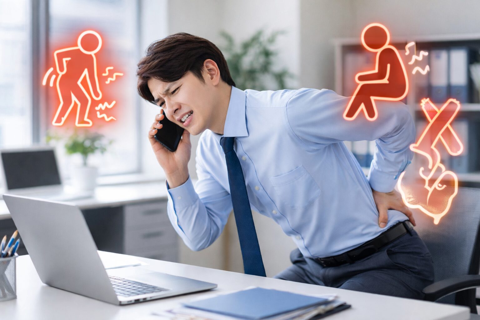 腰痛は、軽い状態のうちに休むことで早く落ち着くケースがある一方、無理をすると痛みが慢性化しやすいとも指摘されています。特に、同じ姿勢を続ける仕事では負担が蓄積しやすいようです。
