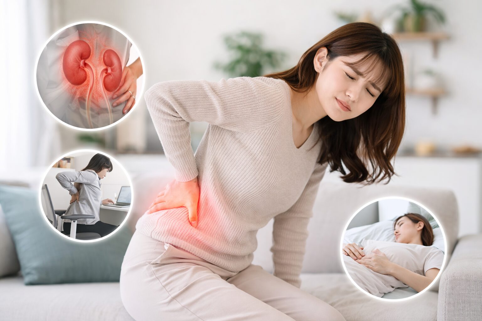 →はい、腰の奥のほうがズーンと痛む場合、腎臓や尿路のトラブルが関係していることもあると言われています。発熱やだるさ、トイレの違和感があるときは注意が必要とされています。