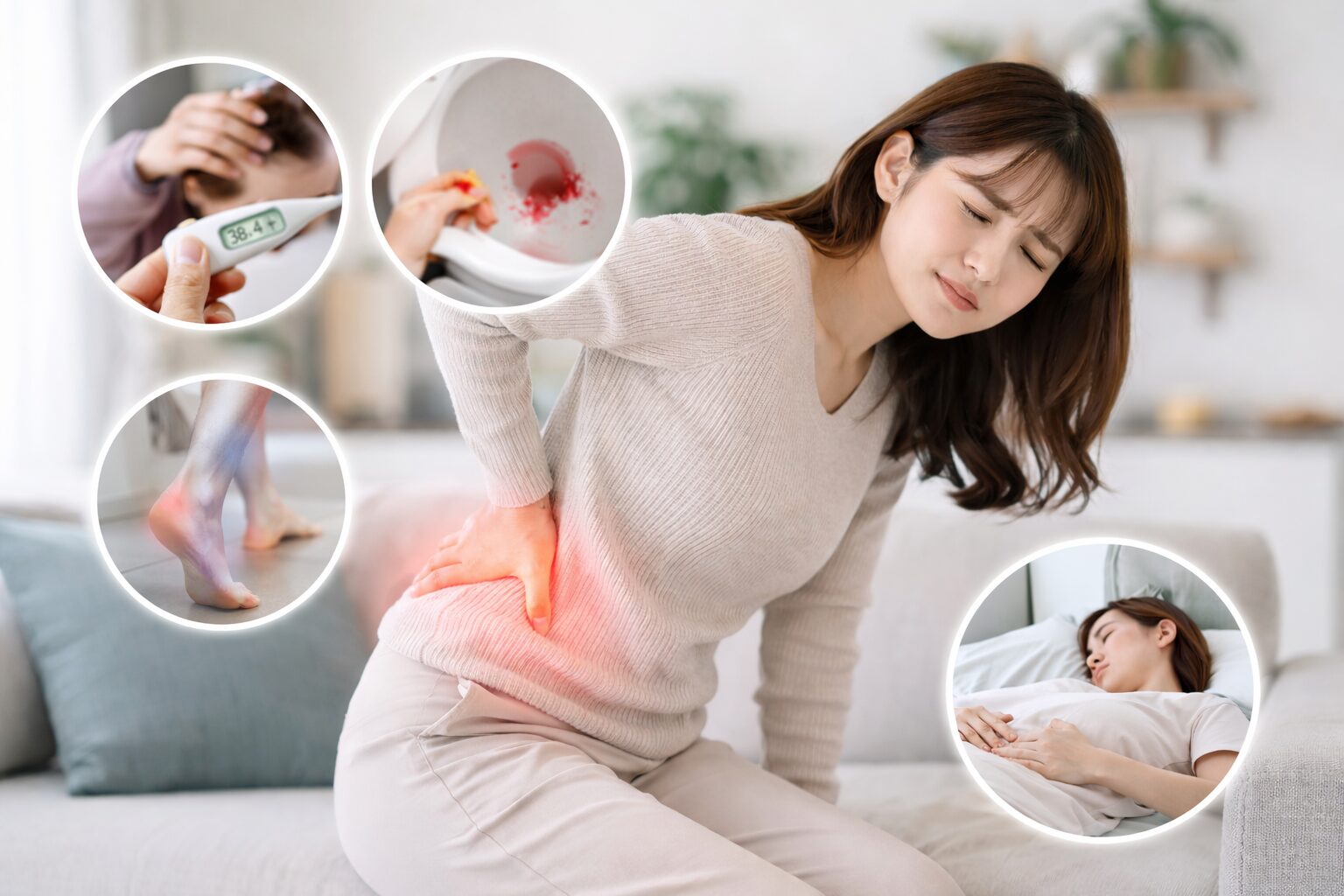 →こういうときは注意が必要とされています。発熱や吐き気、血尿などがある場合、腎臓や尿路のトラブルが関係している可能性があると言われています。腰の痛みとセットで出るのが特徴とも考えられているそうです。