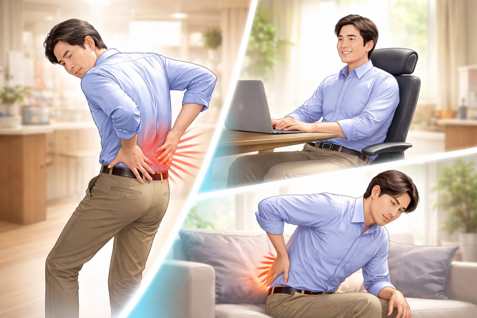 「腰痛 立つと痛い 座ると楽」でも、我慢しなくていいタイミングがあります。たとえば、痛みが1〜2週間以上続く、日常動作(立つ・歩く・寝返り)がきつい、痛み止めや休息でも変化が少ない… 이런場合は、一度医療機関で相談する方が安心と言われています。さらに、脚のしびれや痛みが強い、力が入りづらい、症状がどんどん広がるときも、早めの相談がすすめられることが多いそうです。