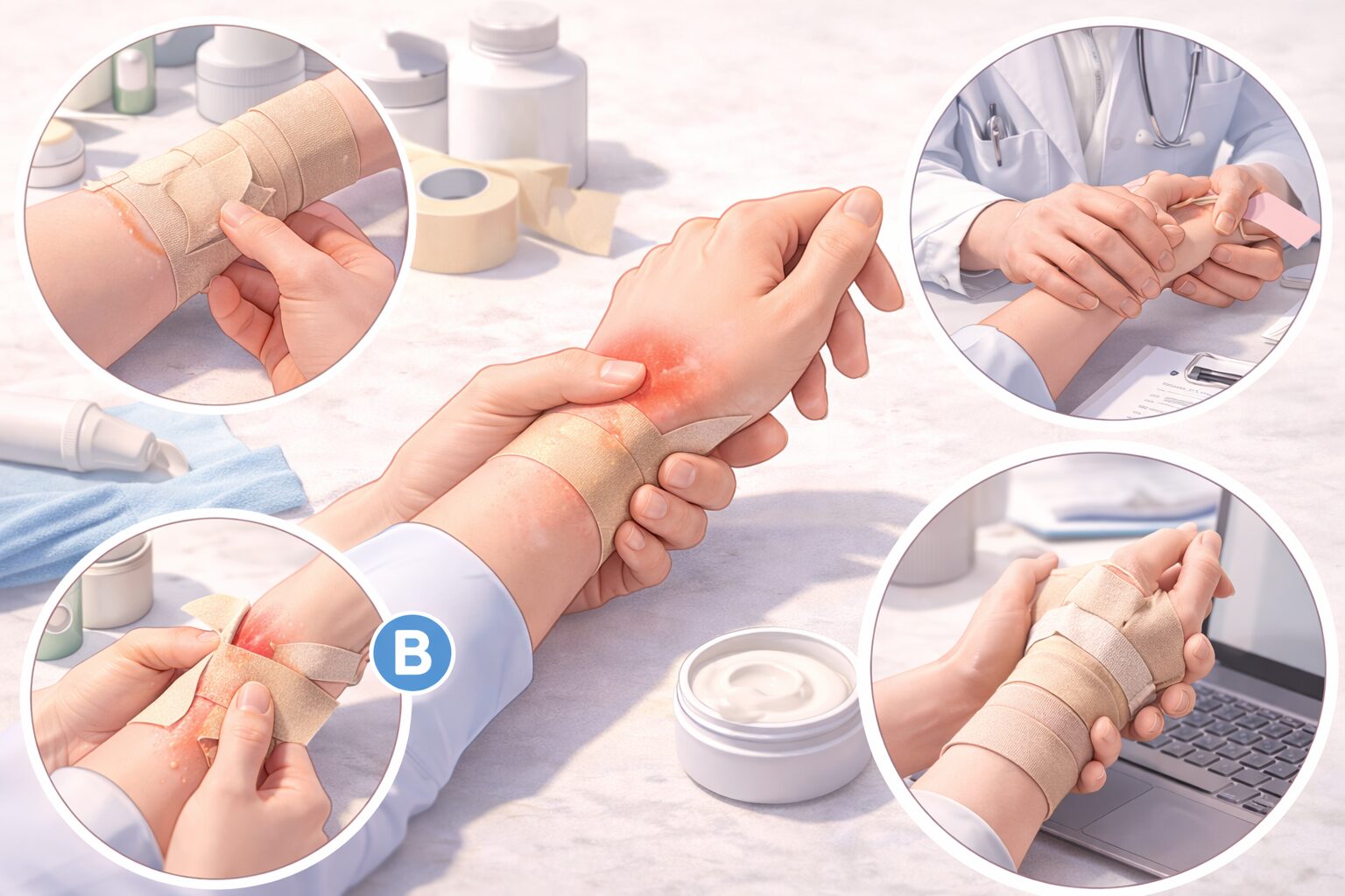 4 【写真/図解想定】腱鞘炎(手首)の湿布の貼り方:剥がれない3パターン