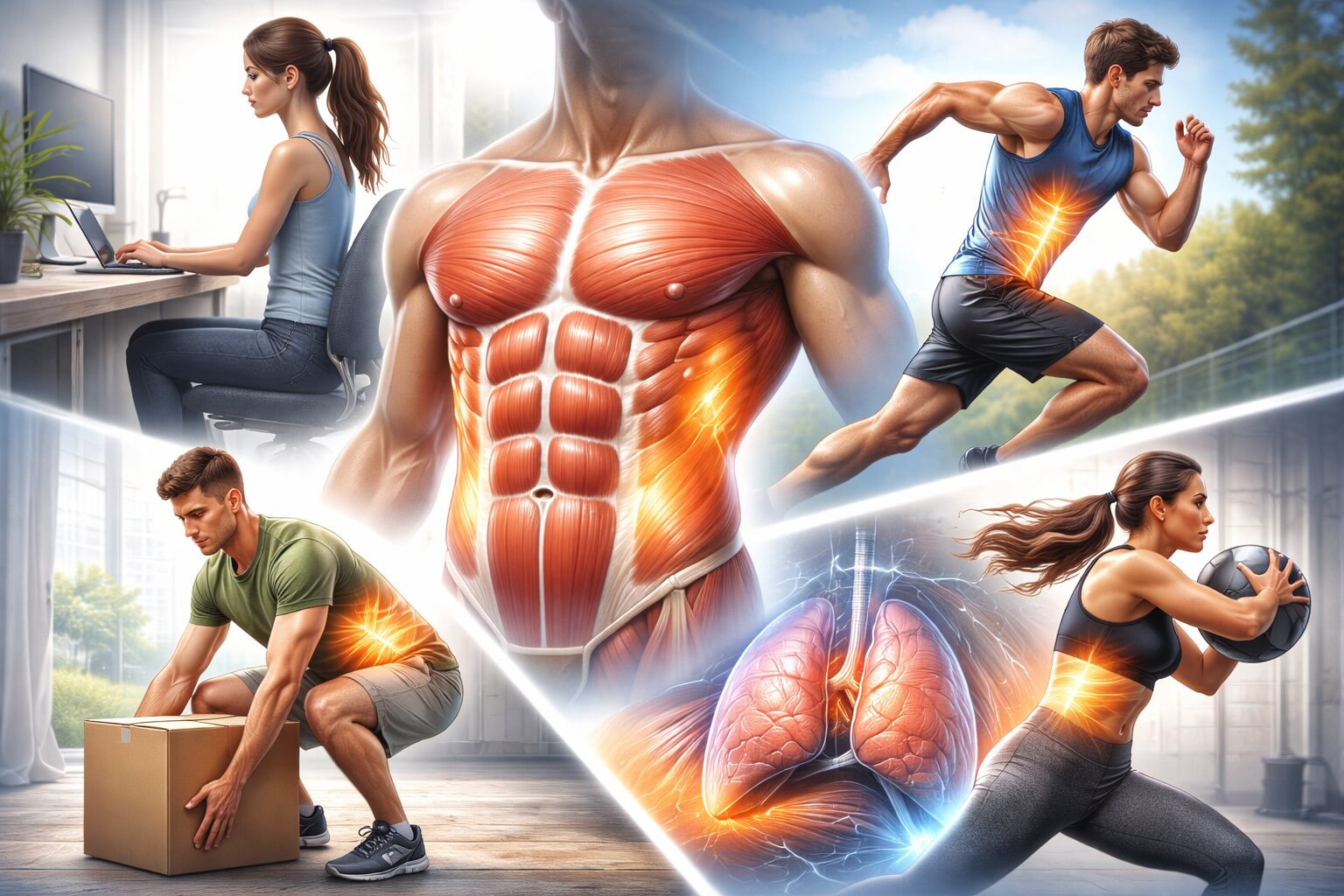 腹筋肉は呼吸とも無関係ではないと言われています。特に腹横筋は、息を吐く動作を助け、腹圧を高める役割があるとされています。