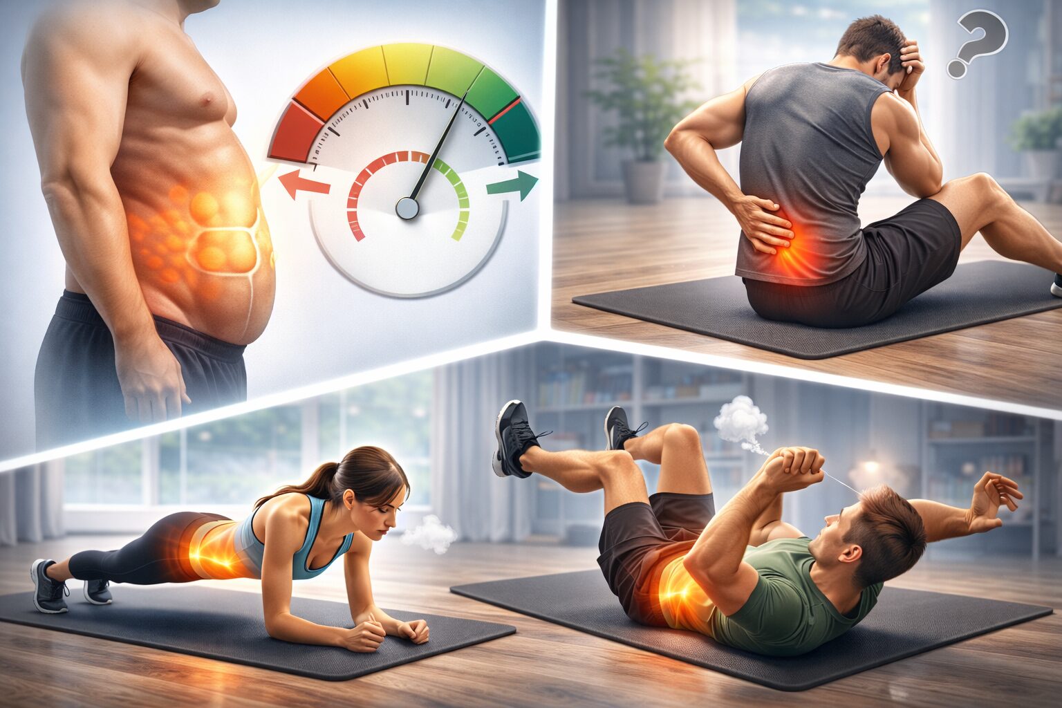 また、フォームや呼吸も重要です。反動を使いすぎたり、呼吸を止めたりすると、狙った腹筋肉に刺激が入りづらいと言われています。動作中は「ゆっくり・呼吸を意識」が基本とされています。