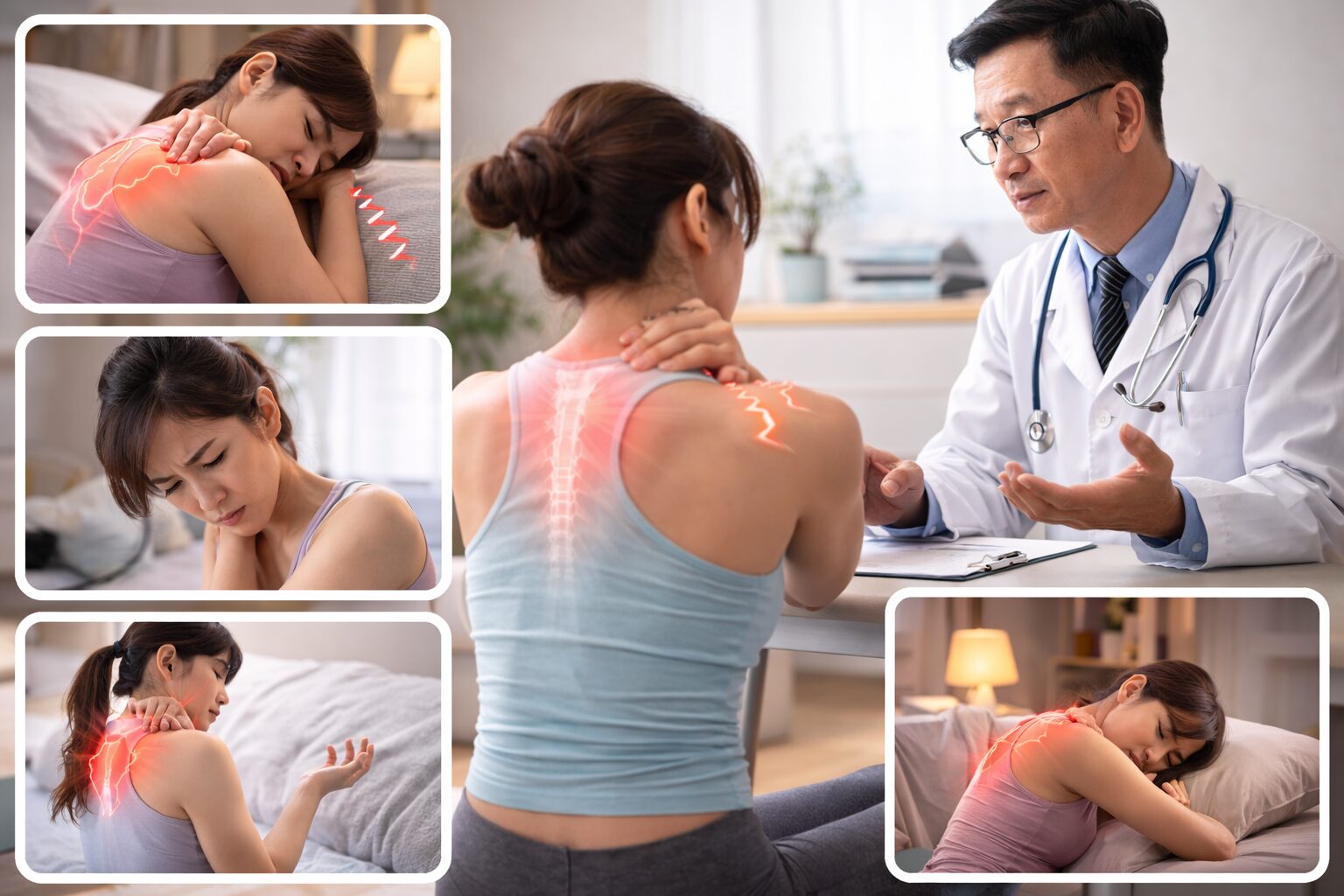 よくある症状:肩甲骨の内側の重だるさ/肩こり/背中の張り