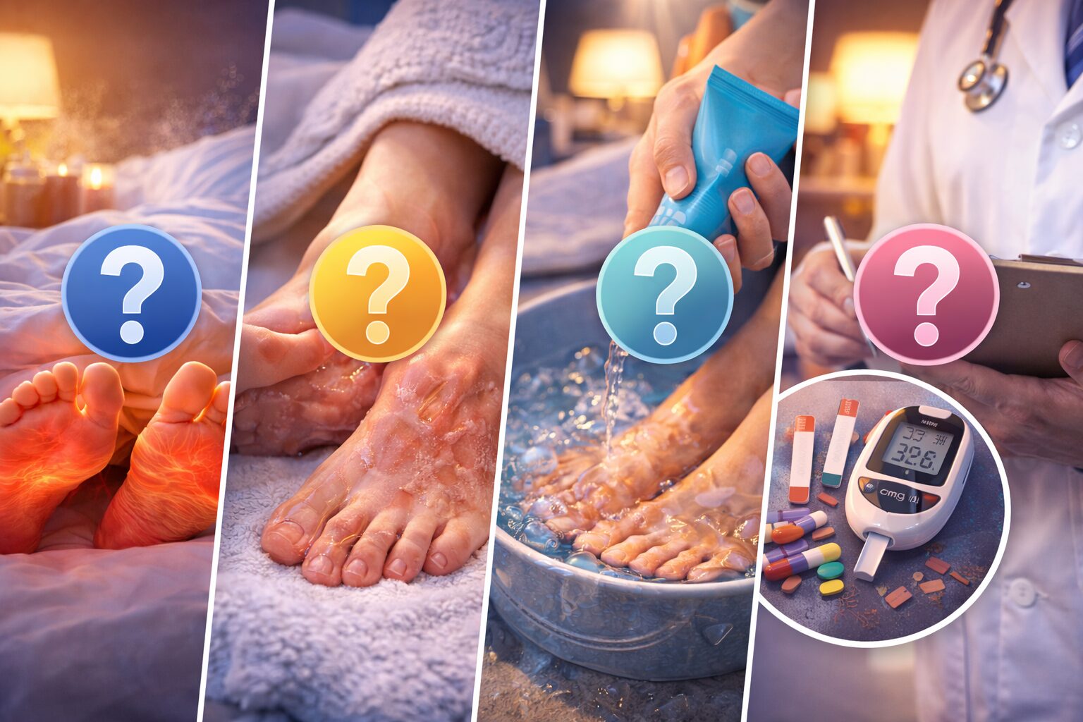 たとえば、糖尿病性神経障害や末梢神経障害では、足のほてりに加えて「しびれ」「ピリピリ感」「感覚の鈍さ」を伴うことがあるそうです。夜に強く出やすい傾向も指摘されています。
