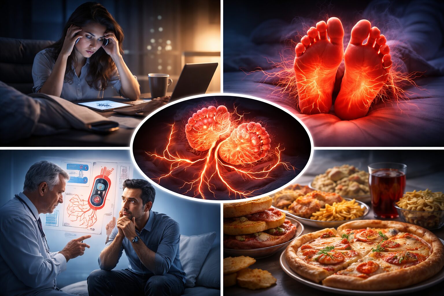 こんな生活、思い当たりませんか? ストレスや生活リズムの乱れが続くと、自律神経のバランスが崩れやすいと言われています。その影響で体温調節がうまくいかず、夜に足の裏だけ熱く感じることがあるそうです。