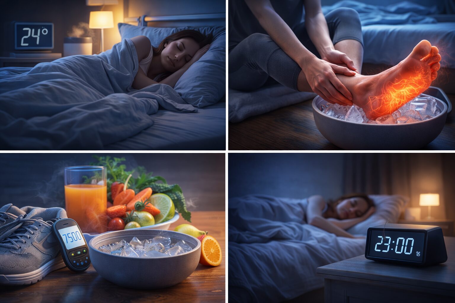 就寝前のセルフケア(ストレッチ・血行促進・足の冷却)