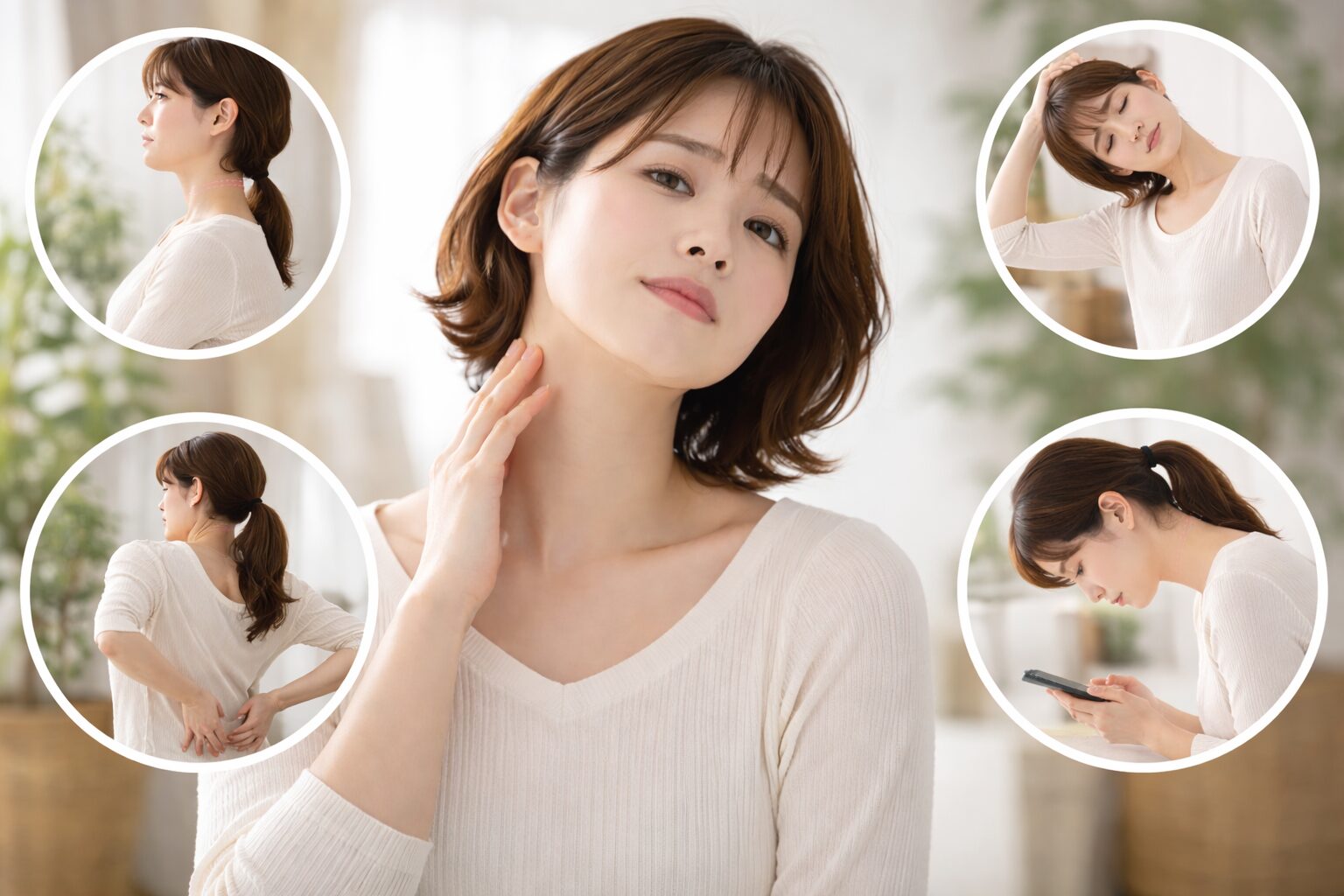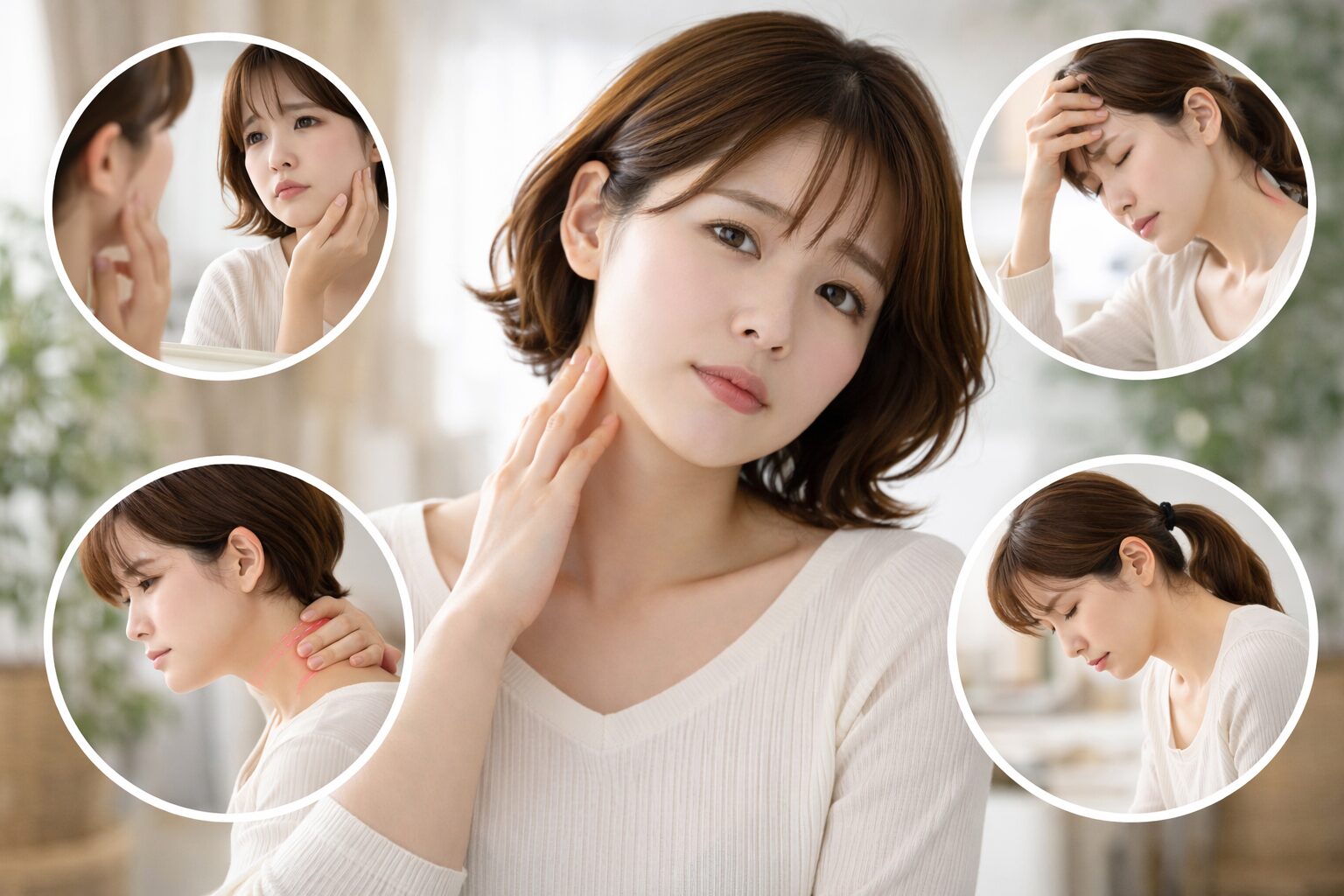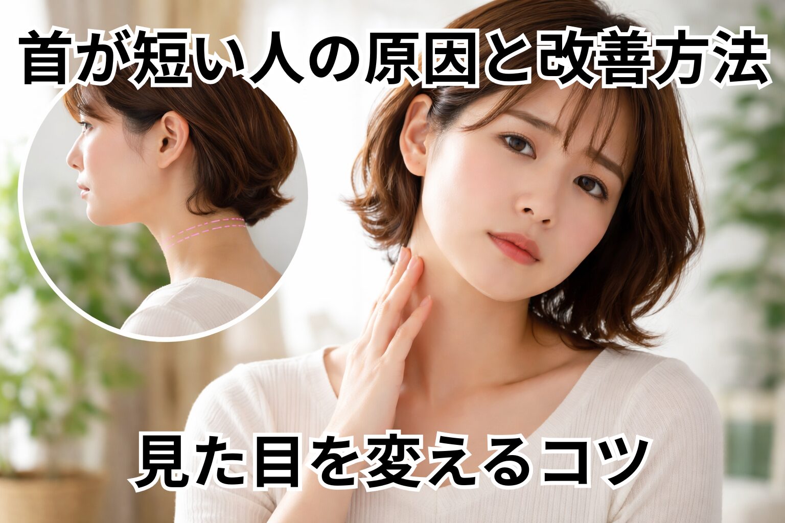 首が短く見えると、顔まわりが詰まった印象になりやすく、全体のバランスが崩れて見えると言われています。そのため、実際の体型とは関係なく「顔が大きく見える」「スタイルが悪く見える」といった悩みにつながるケースもあるようです。