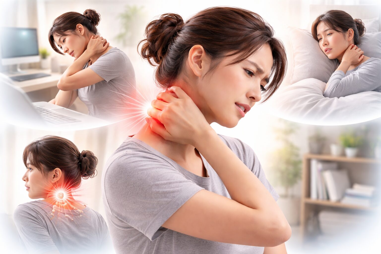 こうしたケースもよく見られます。長時間同じ姿勢が続いたあとに痛みが出る場合は、筋肉の緊張や血行の低下が関係していると言われています。一方、起床時から痛みがある場合は、寝ている間の姿勢や枕の高さが合っていない可能性も考えられます。